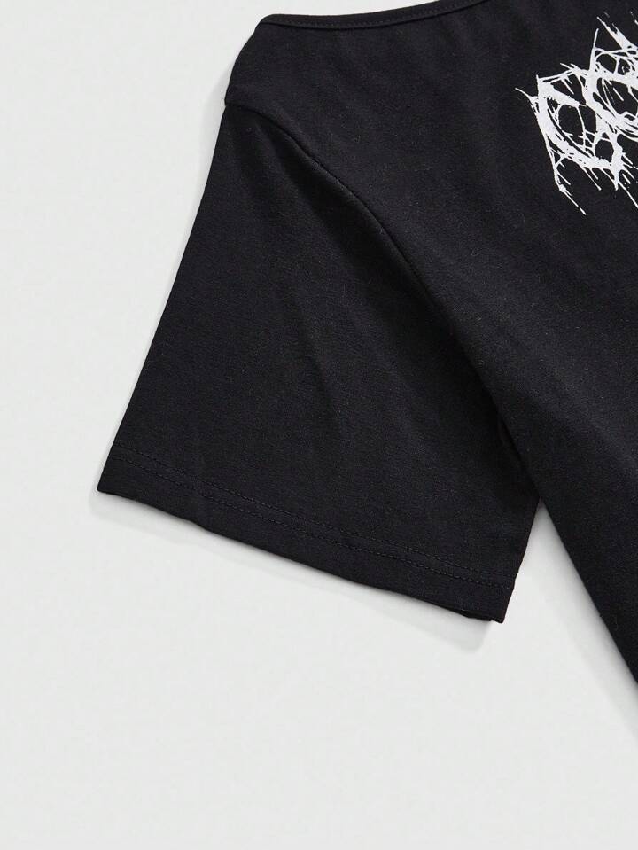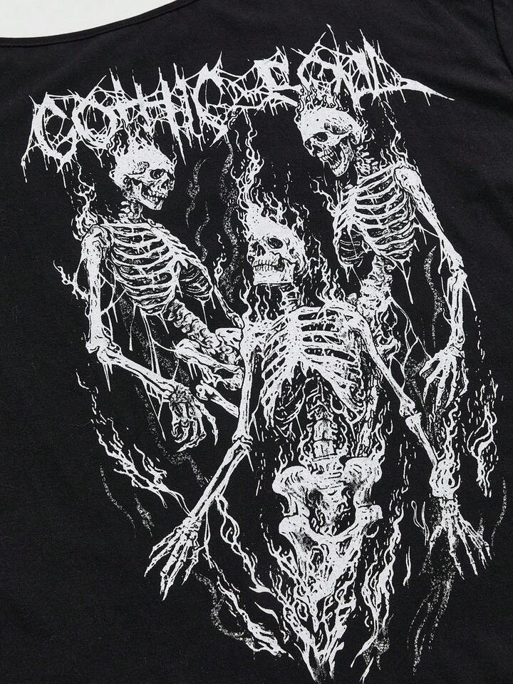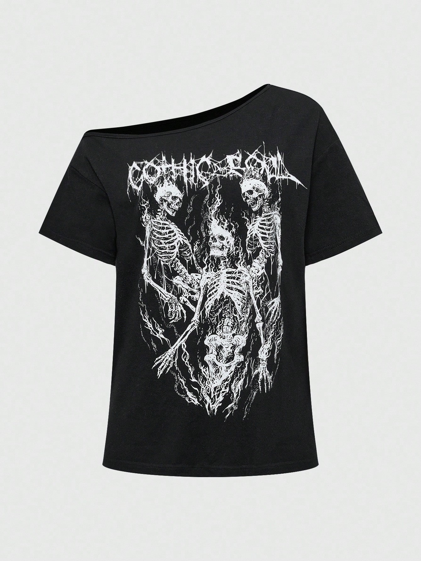 Goth T-shirt da donna a maniche corte con stampa asimmetrica a teschio gotico, adatta per Ognissanti