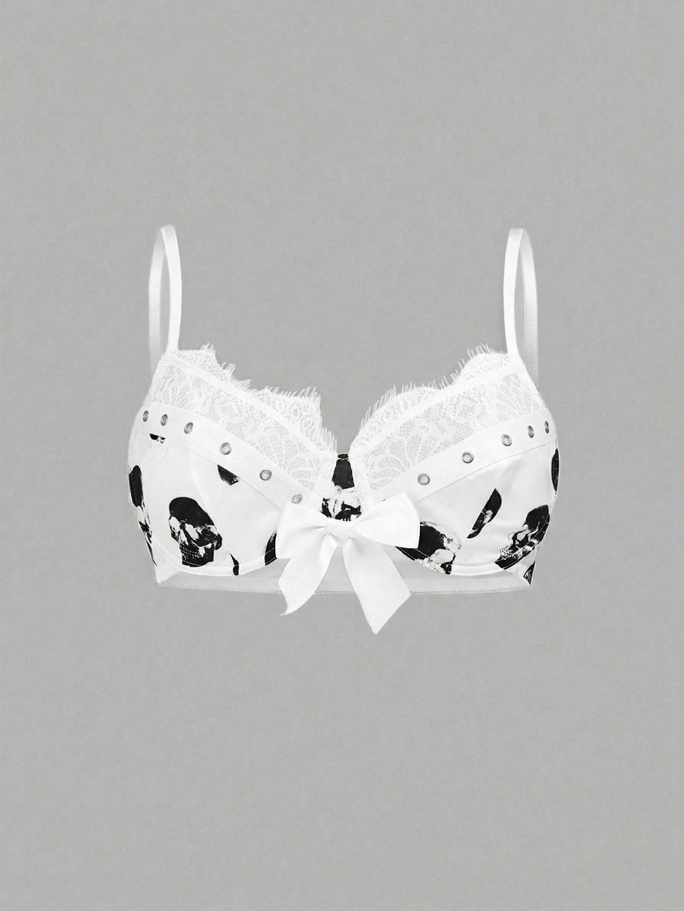Goth Reggiseno con ferretto imbottito, con stampa gotica a teschio e inserti in pizzo