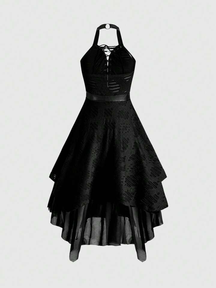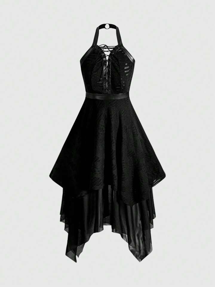 Goth Abito da donna con orlo asimmetrico in stile gotico e allacciatura