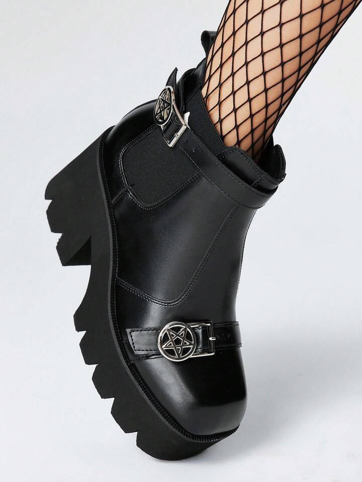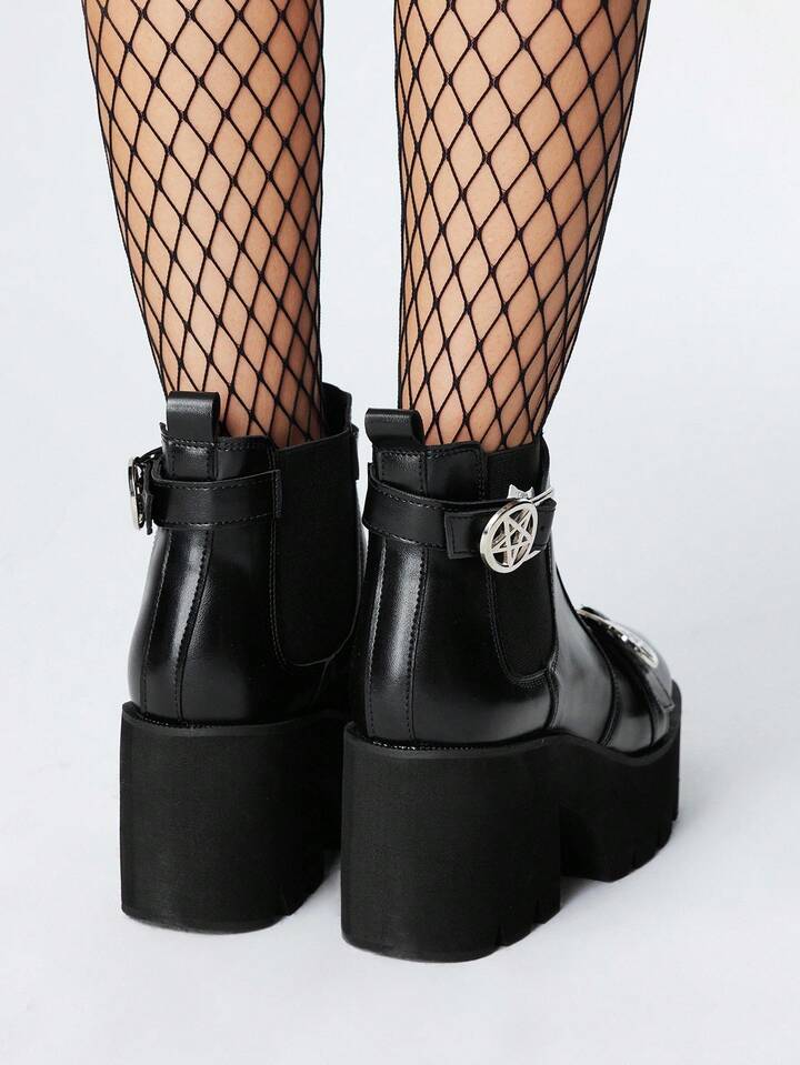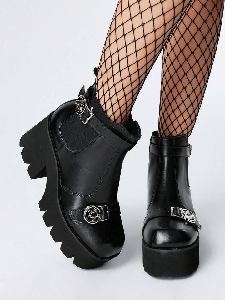 Goth Stivali punk con tacco chunky in stile gotico, stivali neri in pelle PU con tacco alto adatti per feste, uso quotidiano, abiti da sera, per aumentare l'altezza e allungare le gambe, Ognissanti