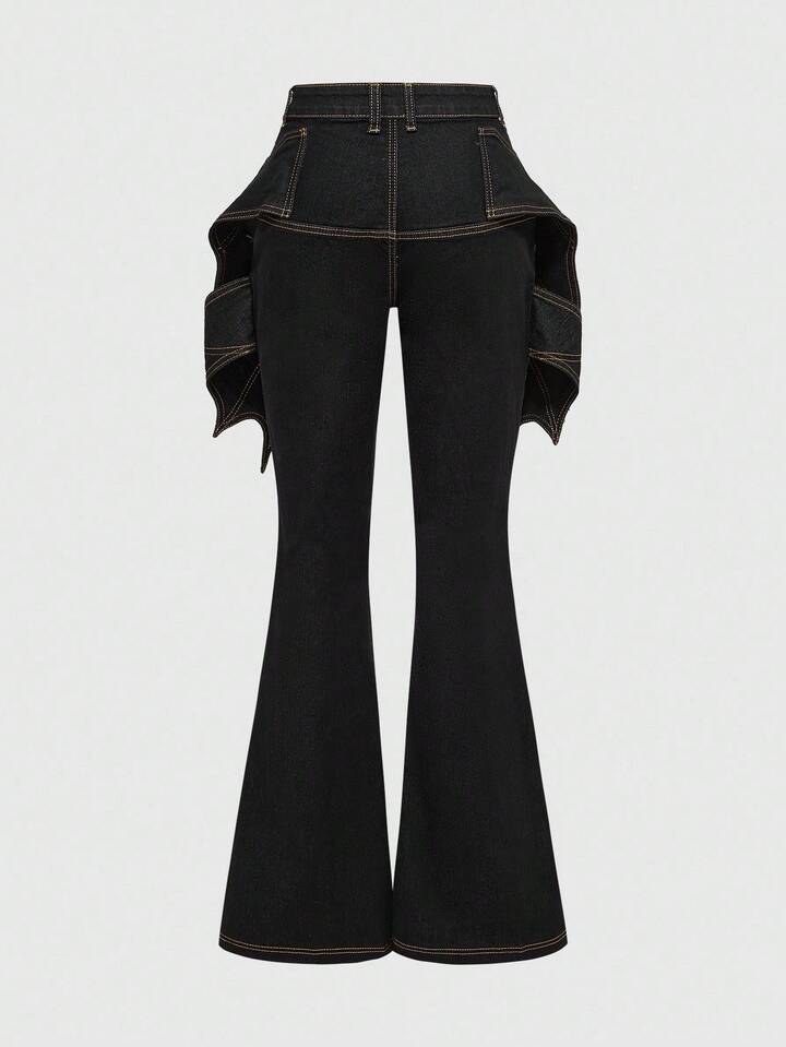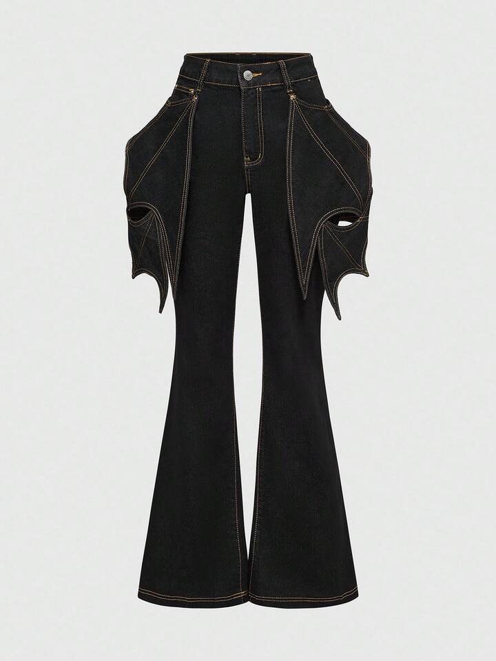 Goth Jeans a zampa di donna con design ad ali di pipistrello in stile gotico per Ognissanti