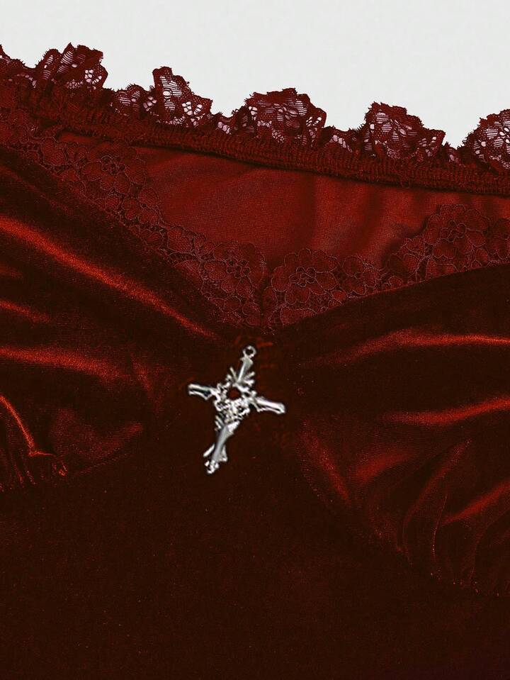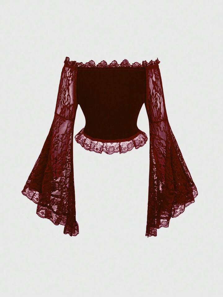 Goth Blusa aderente in velluto con maniche a sbuffo e spalle scoperte in stile gotico, per donna
