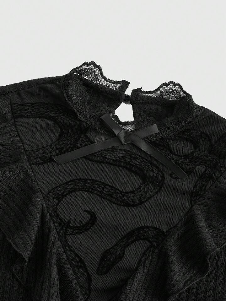 Goth Blusa a maniche a sbuffo con stampa pelle di serpente semitrasparente sul davanti, in stile gotico