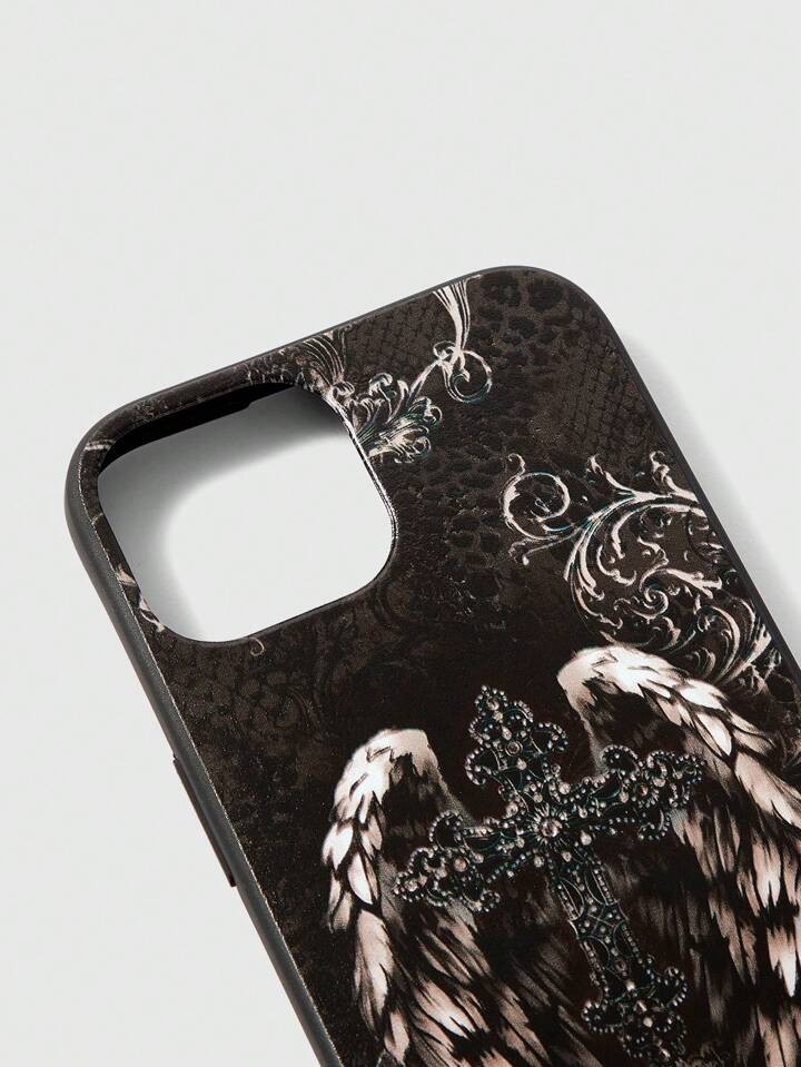 Goth Custodia per telefono in TPU nera con disegno di ali e croce in stile gotico, adatta per Ognissanti