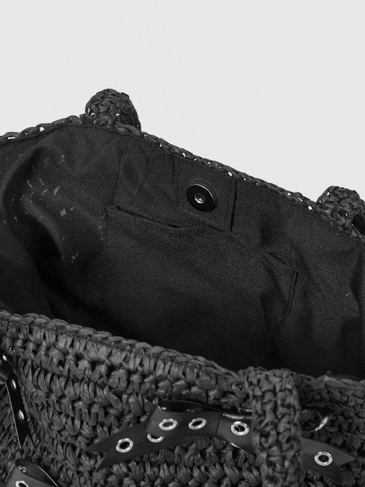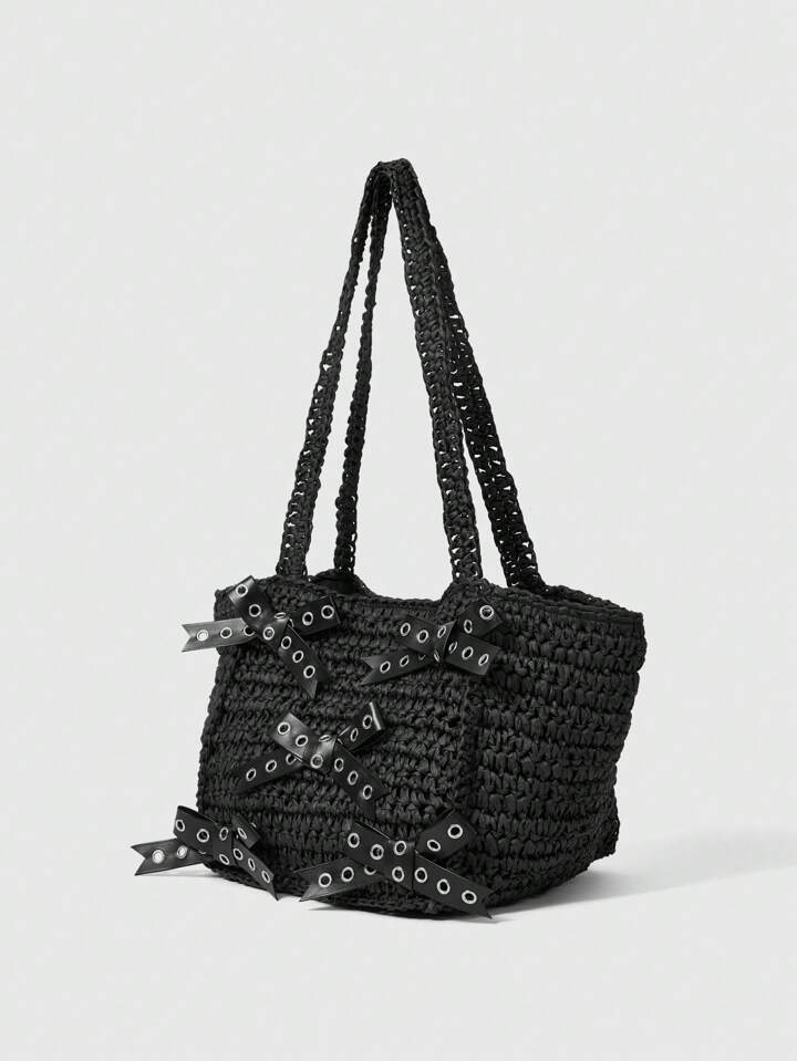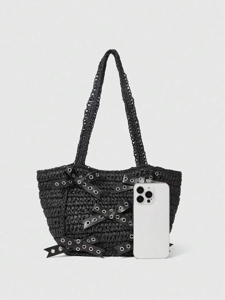 Goth Borsa a spalla da donna in stile gotico, intrecciata in paglia, perfetta per Ognissanti, borse ideali per feste in maschera, abbinabile ai costumi di Ognissanti