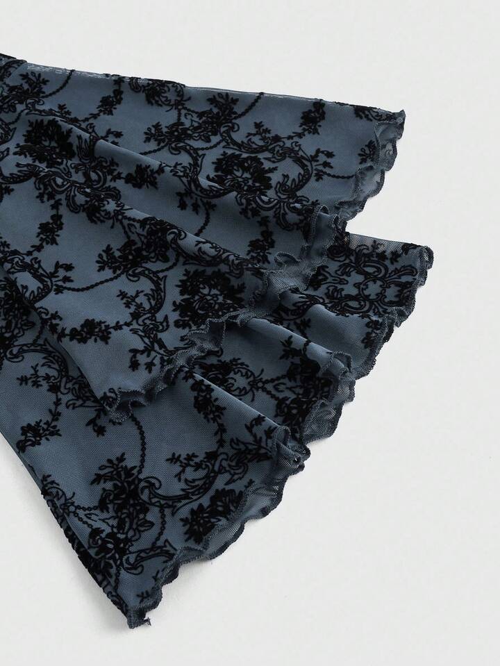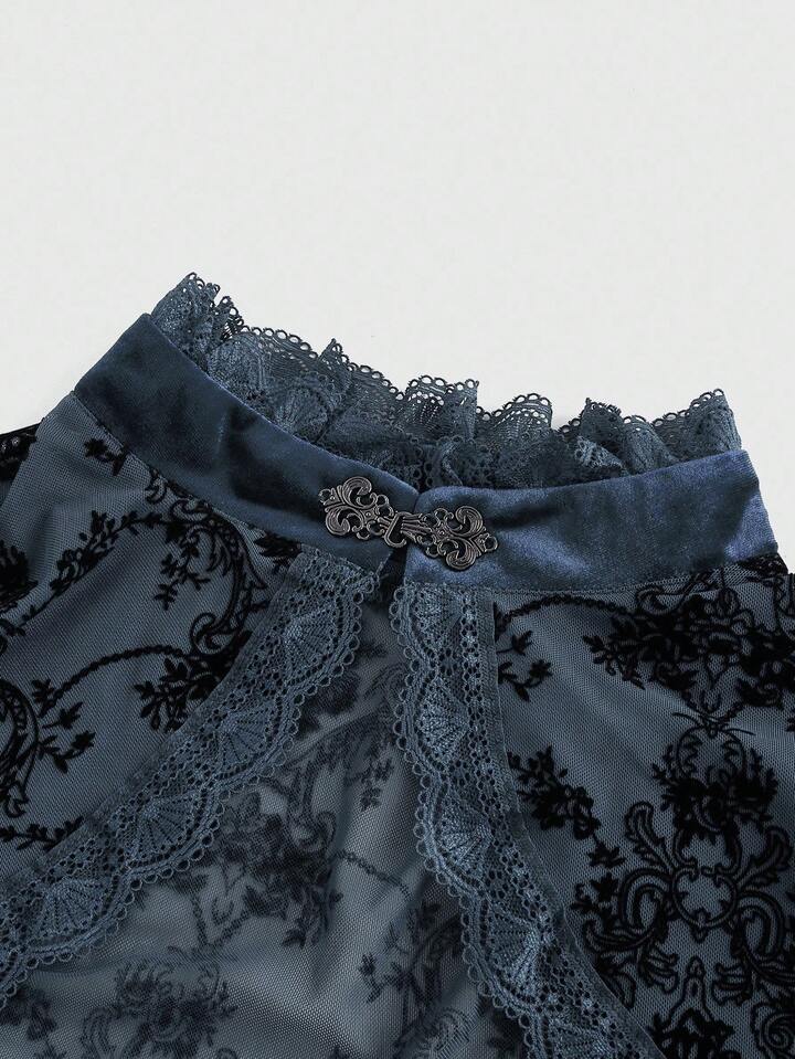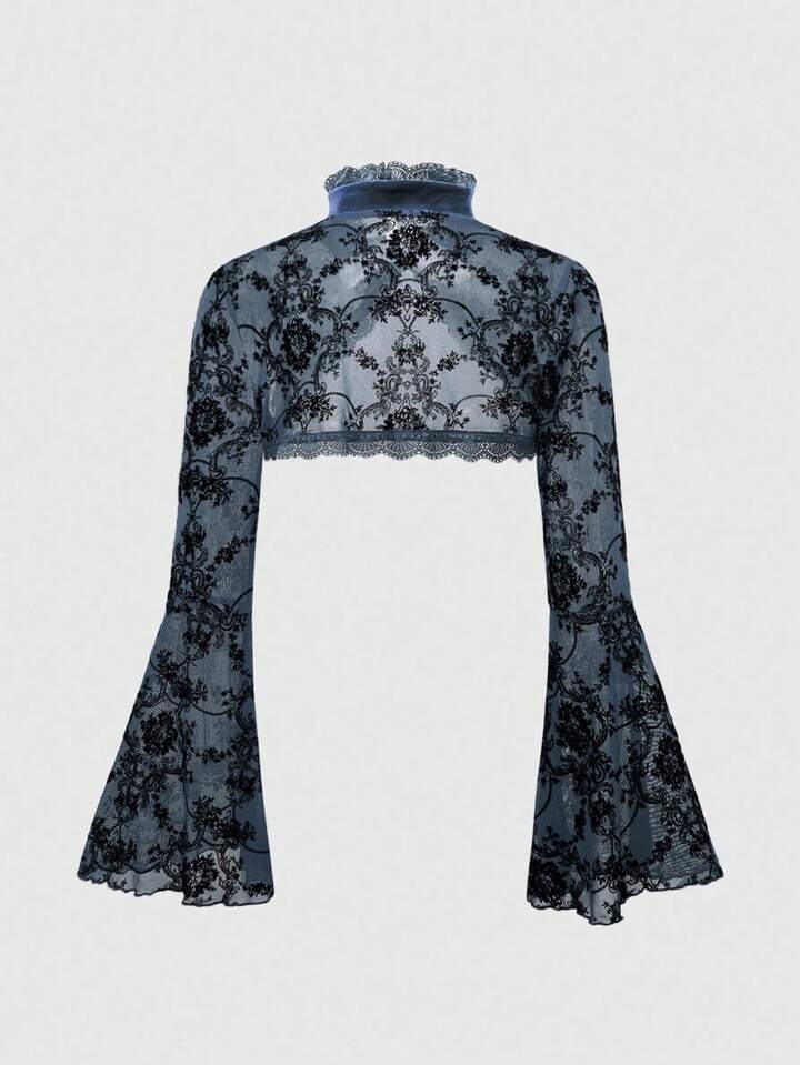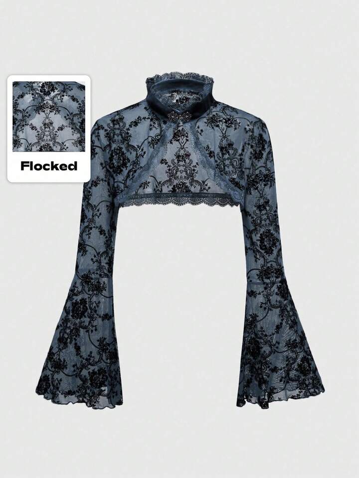 Goth Cardigan da donna retrò con maniche a sbuffo e fessura, con motivo floccato a viticci, stile gotico versatile