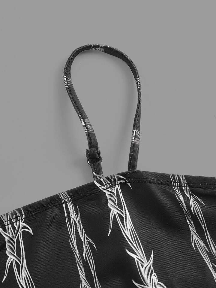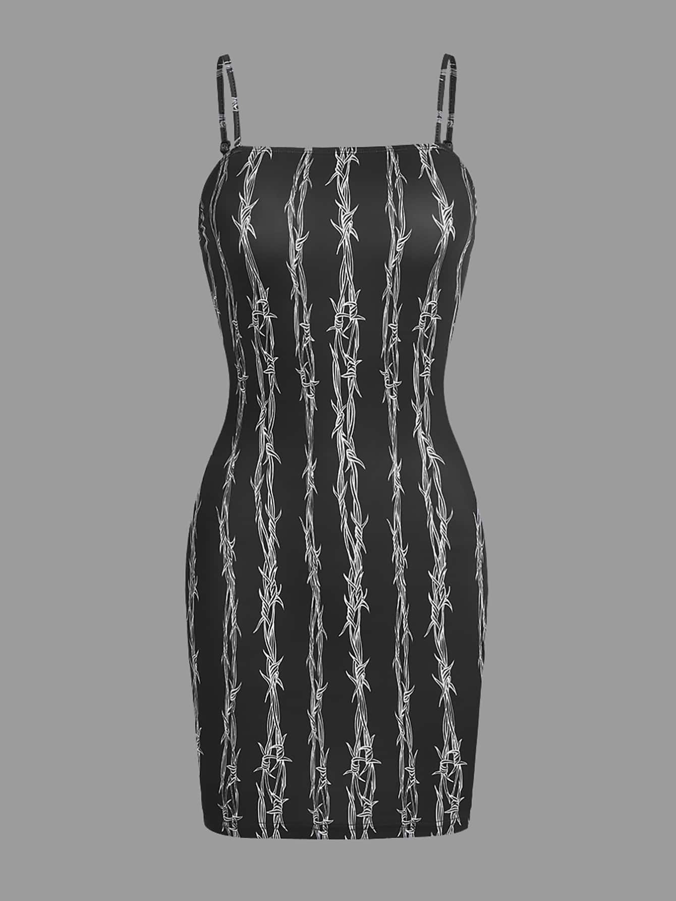 Abito aderente con bretelle sottile con stampa grafica senza a rete da pesce
