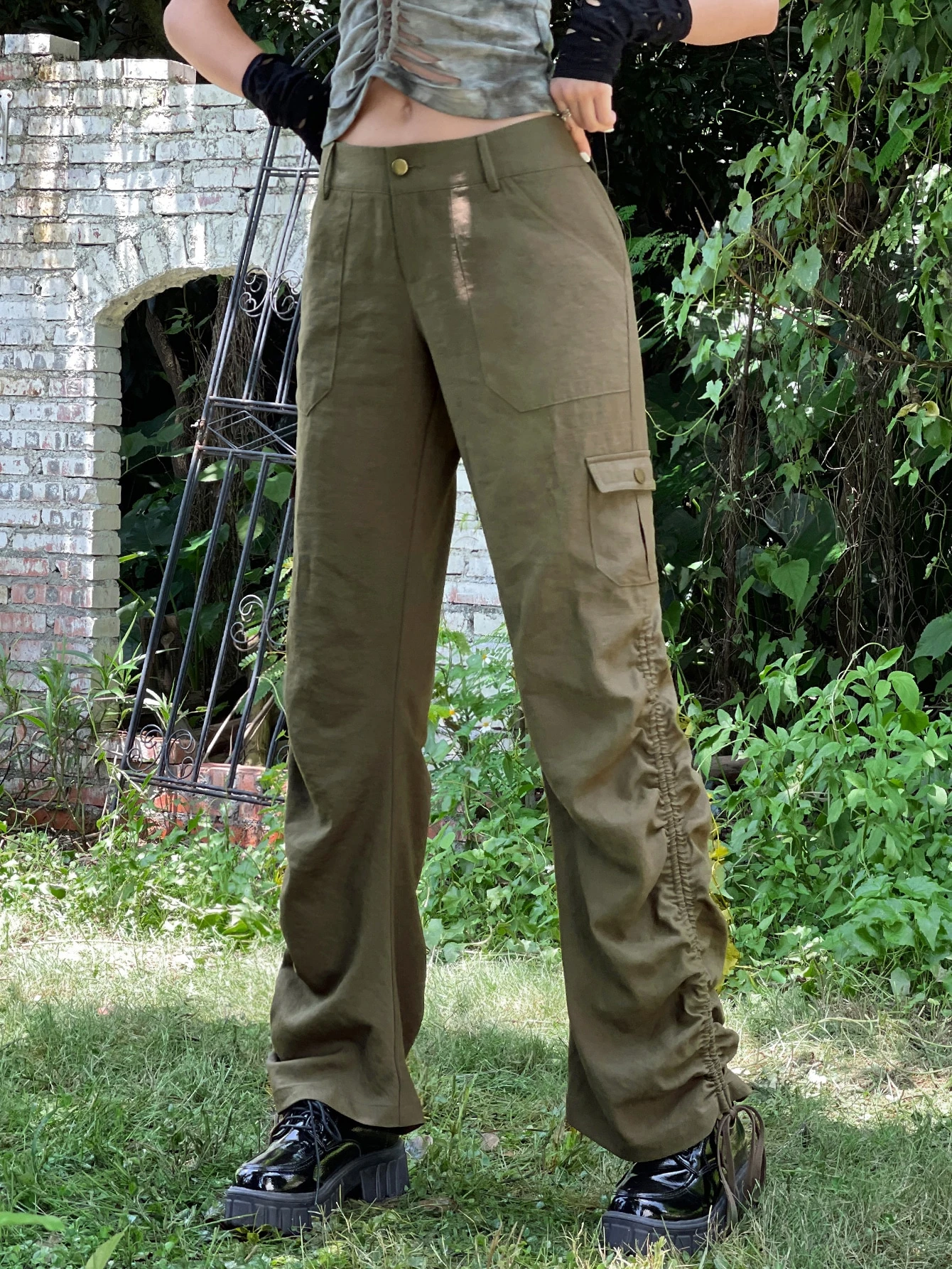 Pantaloni cargo Grunge vita alta con coulisse tasca laterale con patta