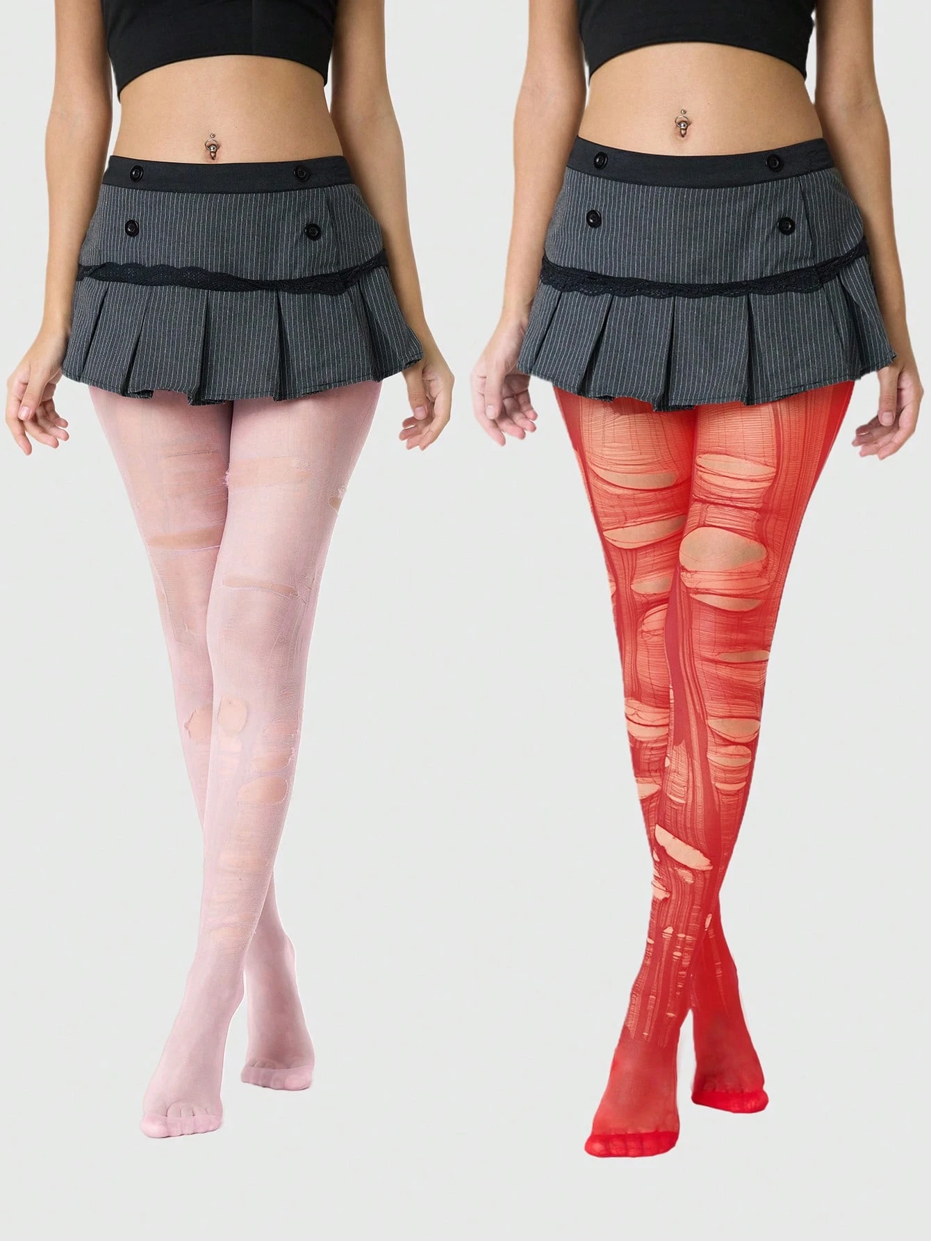 Grunge Punk 1 Paio di Collant Neri Tinta Unita + 1 Paio di Collant Grigi, Set Combo Stile Y2K Baddie, Adatto per Uso Quotidiano e Casual