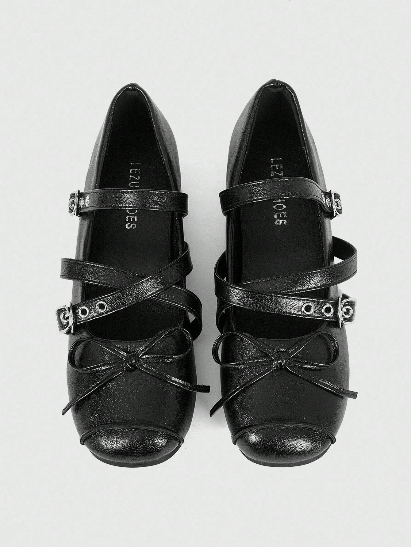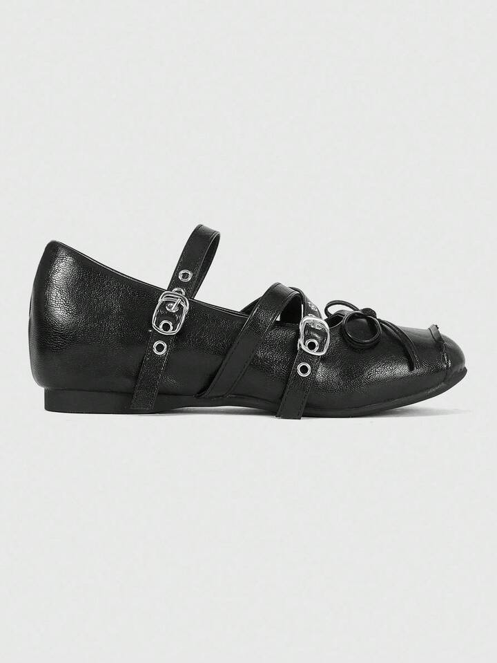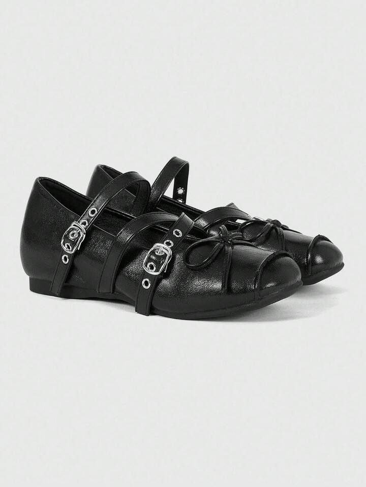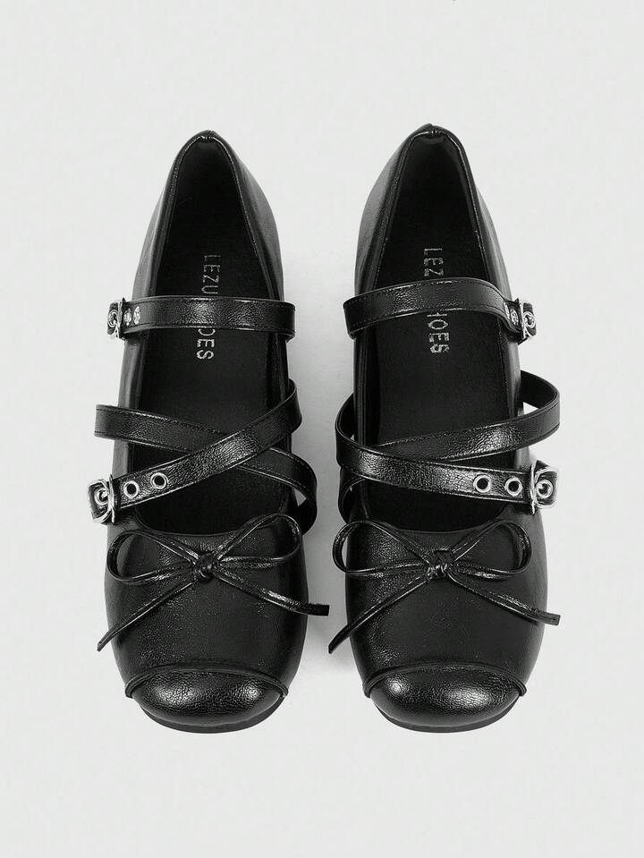 Grunge Punk 1 Paio di ballerine stile strada francese con fiocco, scarpe Mary Jane a punta quadrata