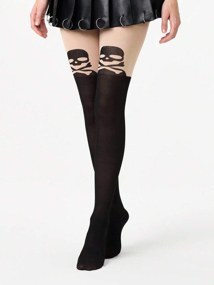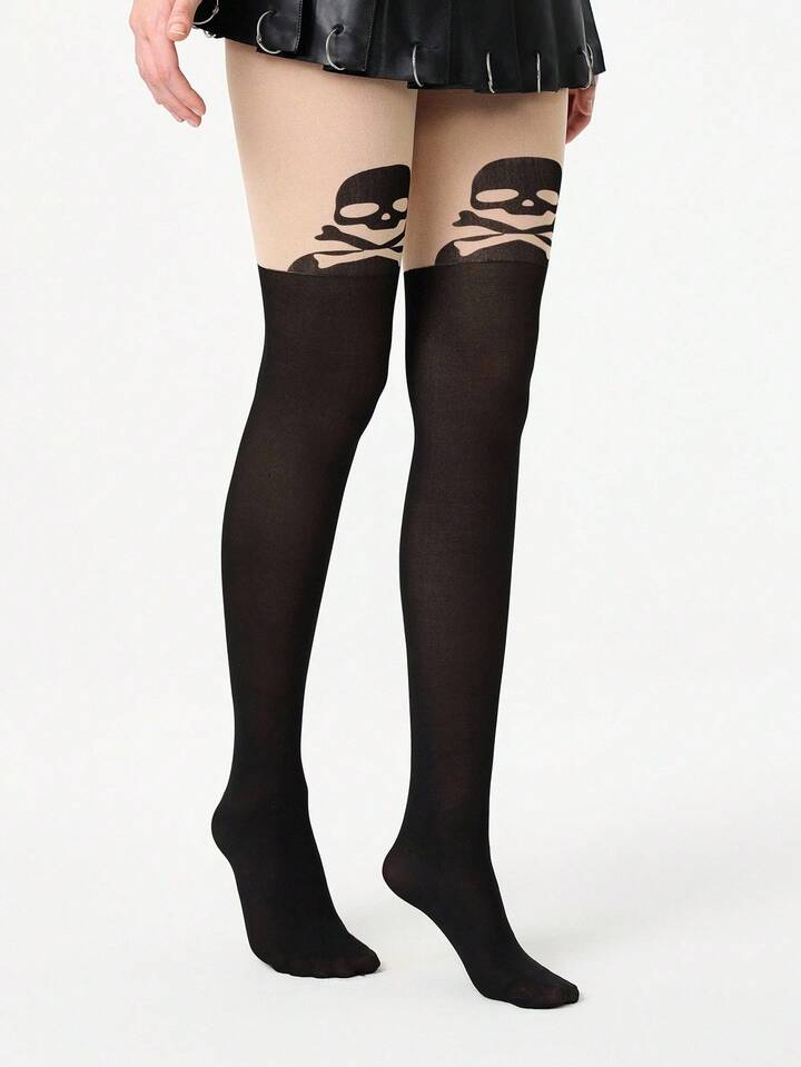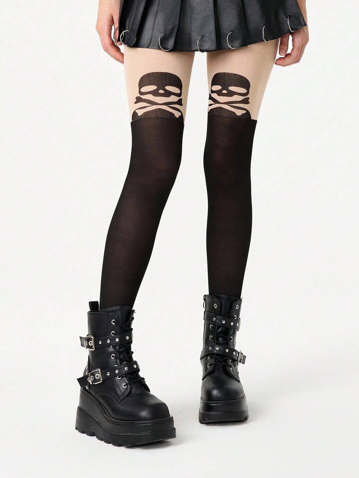 Grunge Punk 1 Paio di collant sexy con stampa scheletro per Ognissanti, collant minimalisti in stile Y2K in bicolore nero e tono pelle, leggings trasparenti super elastici e sottili