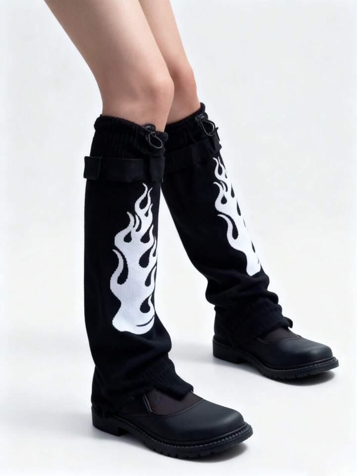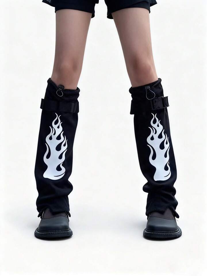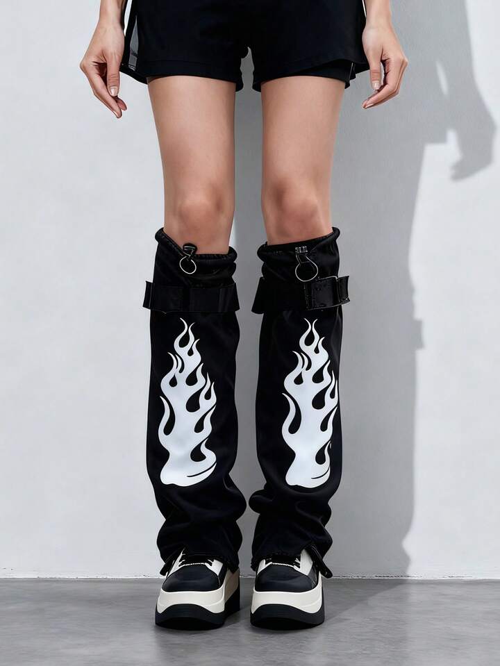 Grunge Punk 1 Paio di Scaldamuscoli in Stile Punk alla Moda, Calze Impilabili con Motivo a Fiamma Lavorato a Maglia in Stile Y2K, Personalizzati, Adatti per Uso Quotidiano e Feste