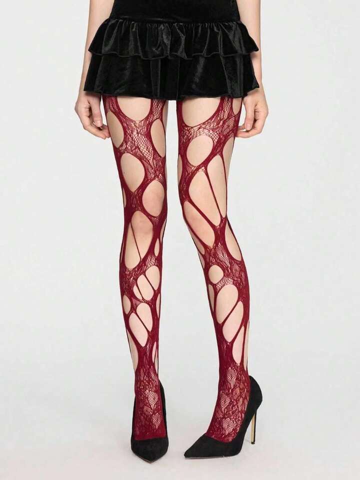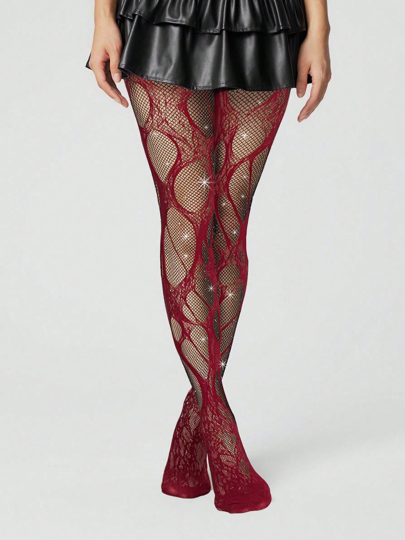 Grunge Punk 1 Paio Di Calzini In Rete Neri Minimalisti Con Diamanti + 1 Paio Di Collant Jacquard Con Motivo Traforato, Set Combinato Di Collant Goth, Versatili Per Uso Quotidiano, Semi-Trasparenti E Sexy, Elastici