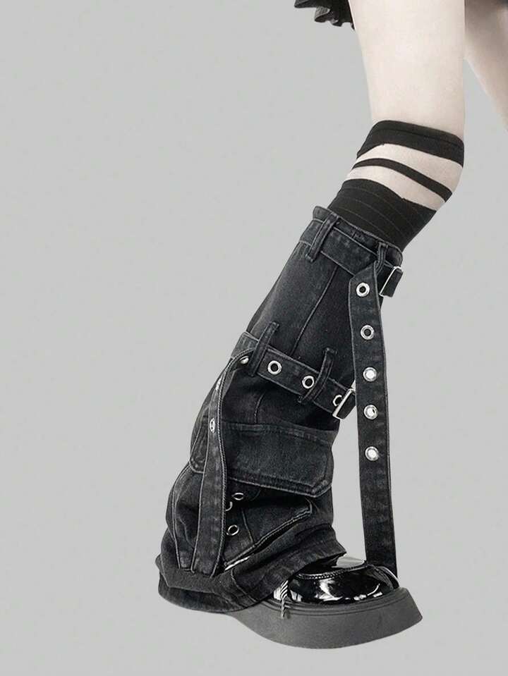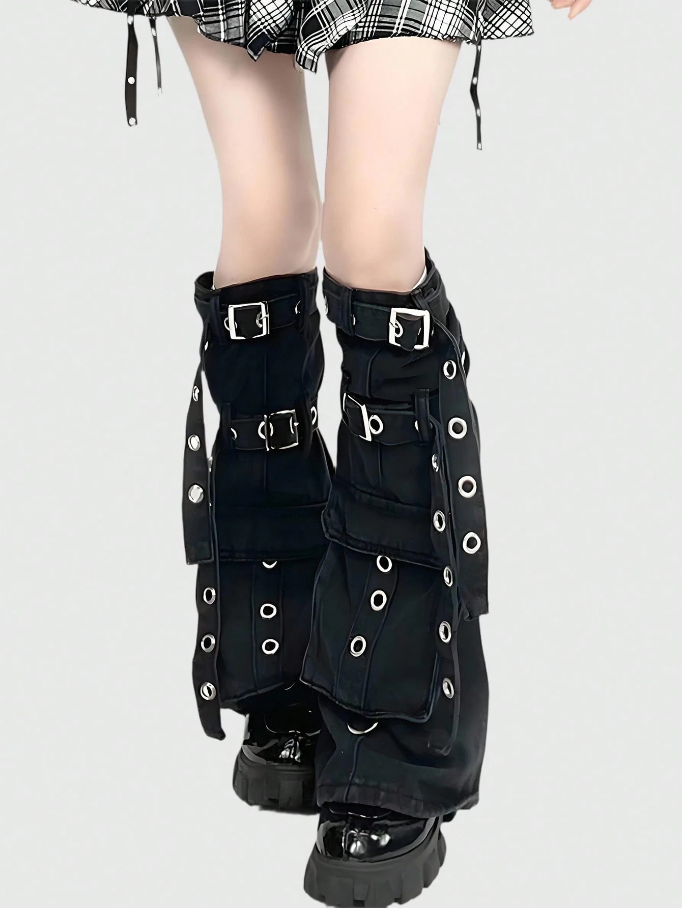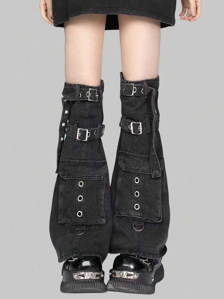 Grunge Punk 1 Coppia Di Scaldamuscoli Stile Punk, Fasce Per Le Gambe Arricciate Stile Gotico Scuro Con Fibbia In Metallo, Vestibilità Slim, Adatti Per L'Uso Quotidiano E Per Feste