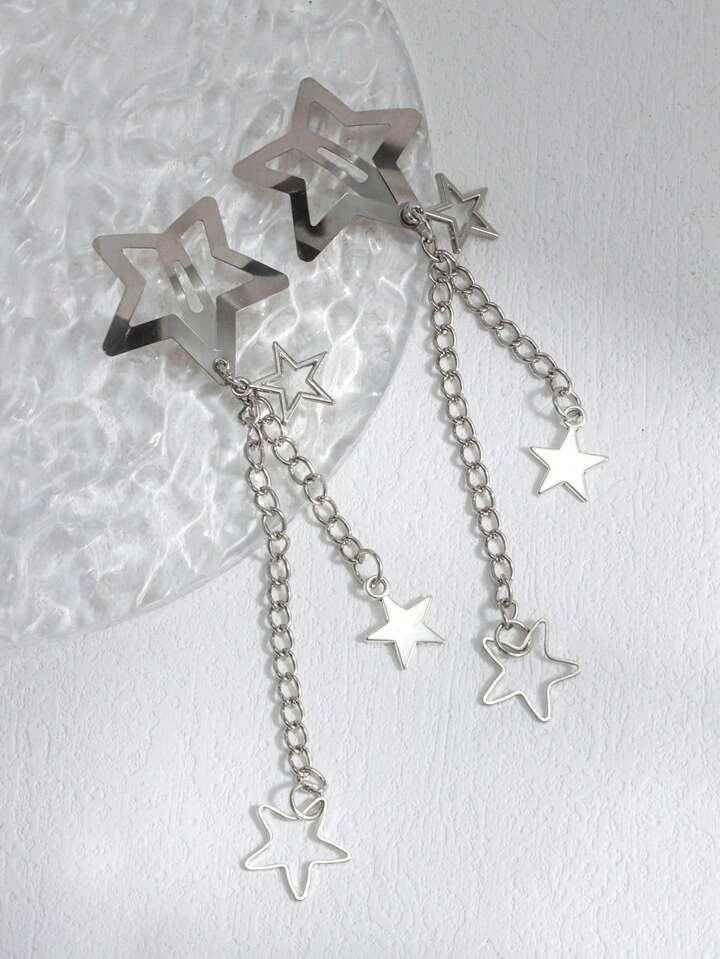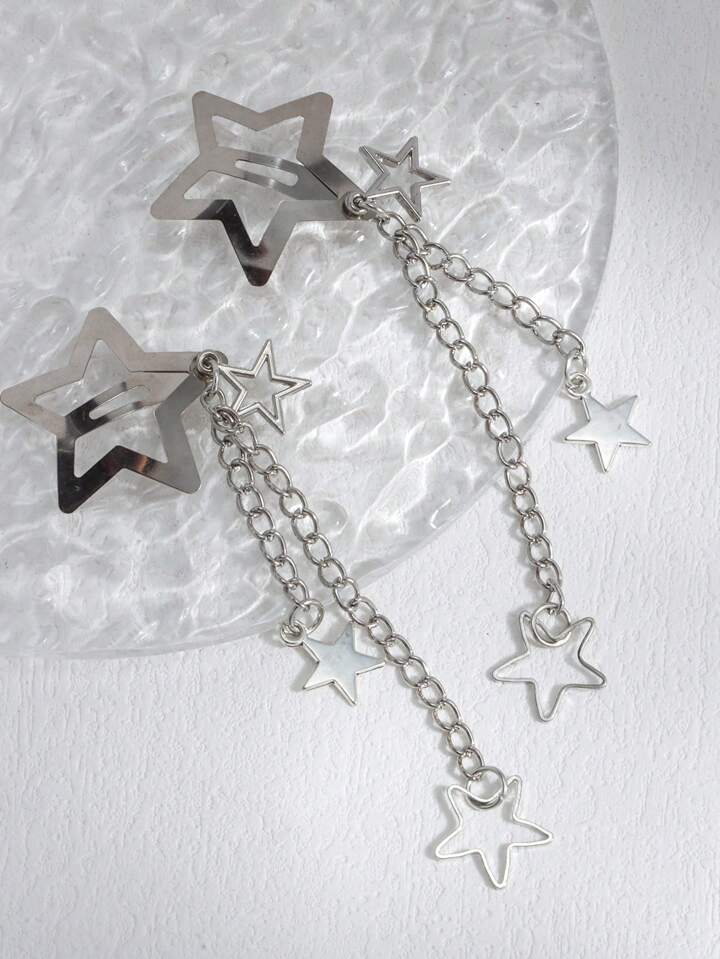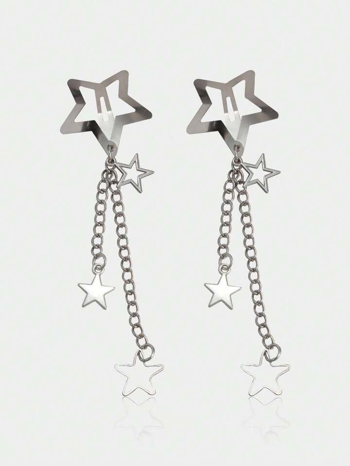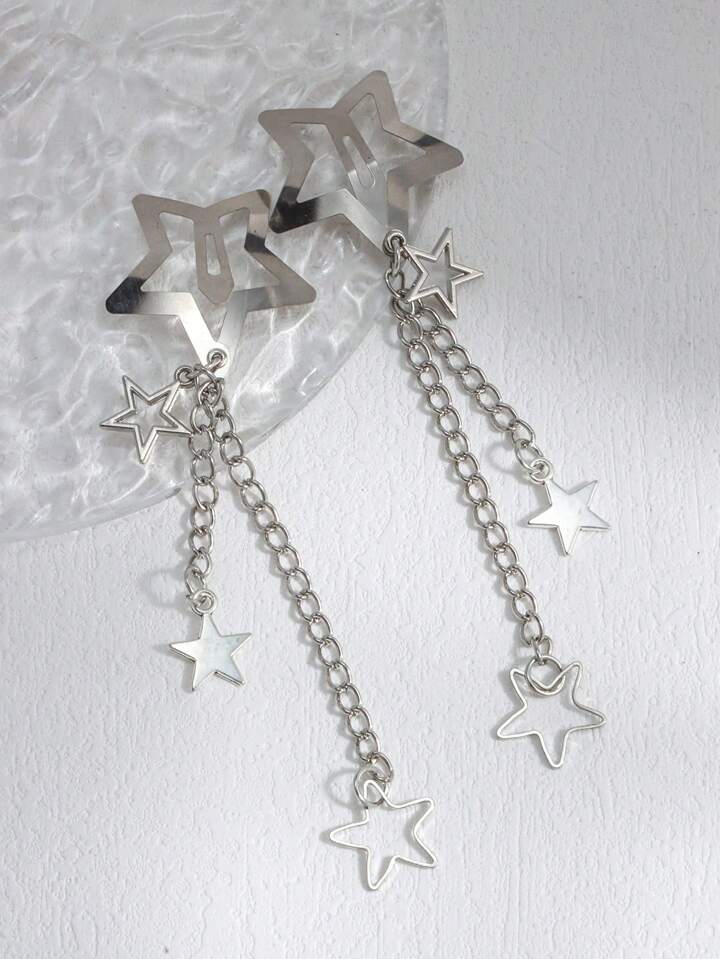 Grunge Punk 1 Paio Di Fermagli Per Capelli Con Catena A Stelle In Stile Punk