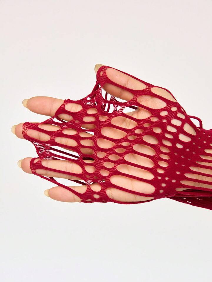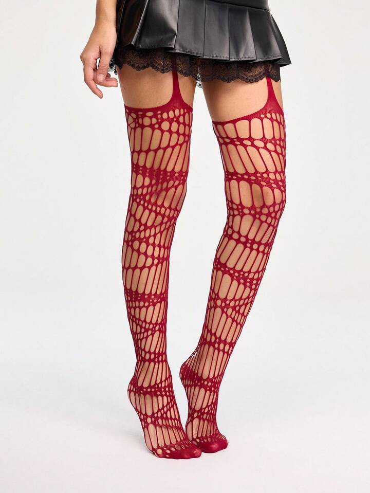 Grunge Punk 1 Paio di Calze a Rete Sexy, Stile Reggicalze Bordeaux Traforato, Design Geometrico Minimalista Traforato, Collant Trasparenti Elastici Ultra Sottili
