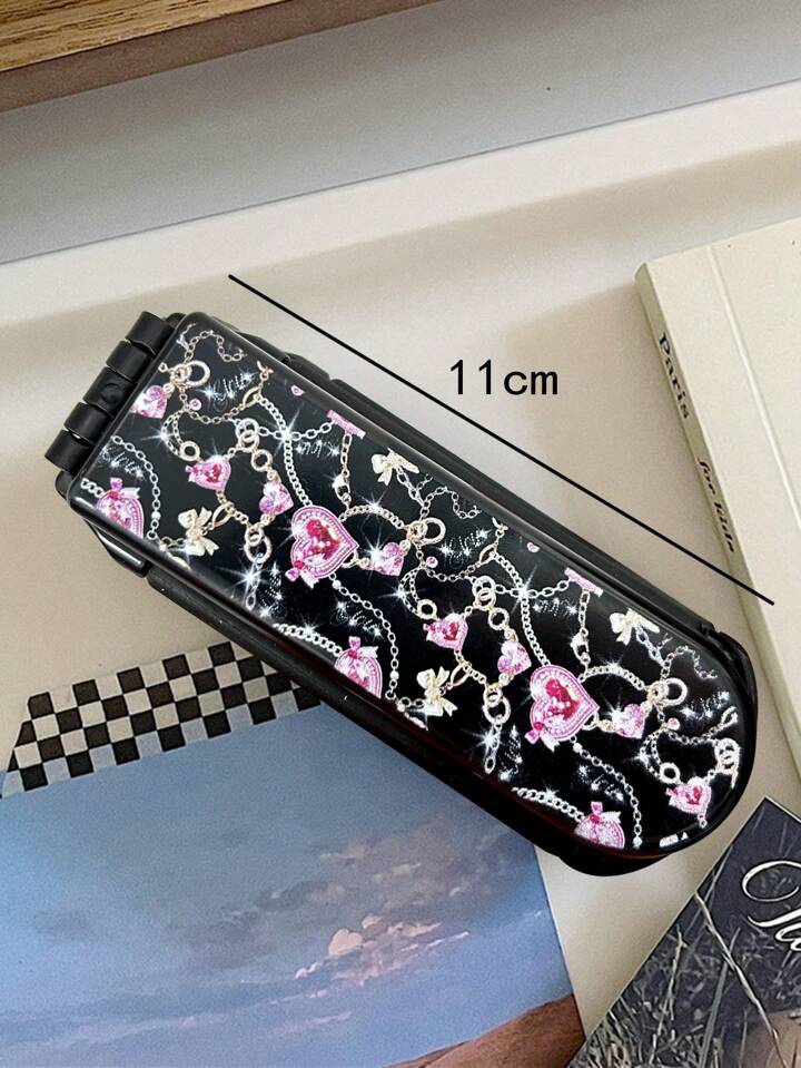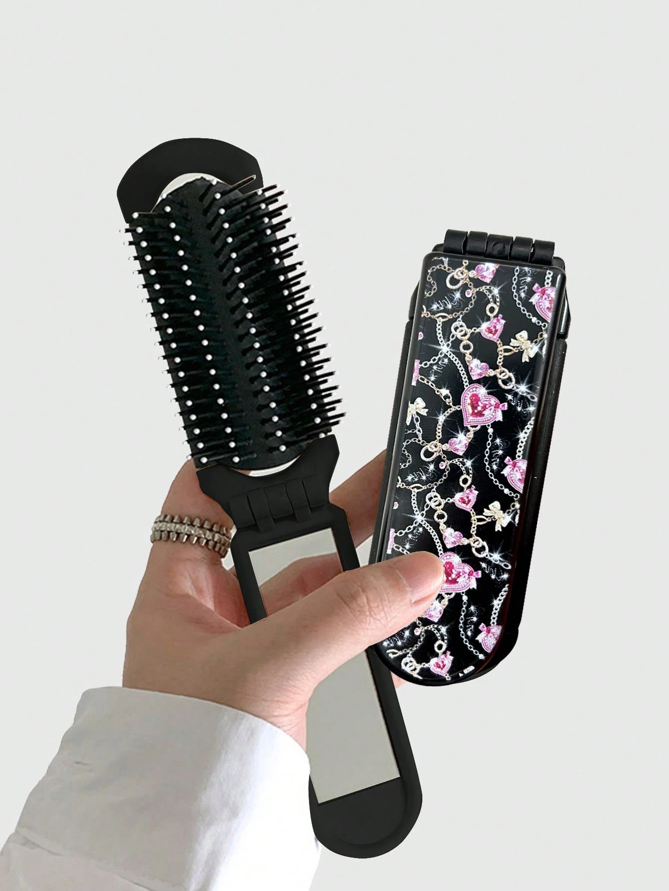 Grunge Punk 1 Spazzola compatta con specchio dal disegno floreale, design pieghevole, accessorio per il ritorno a scuola (la posizione del motivo può variare)