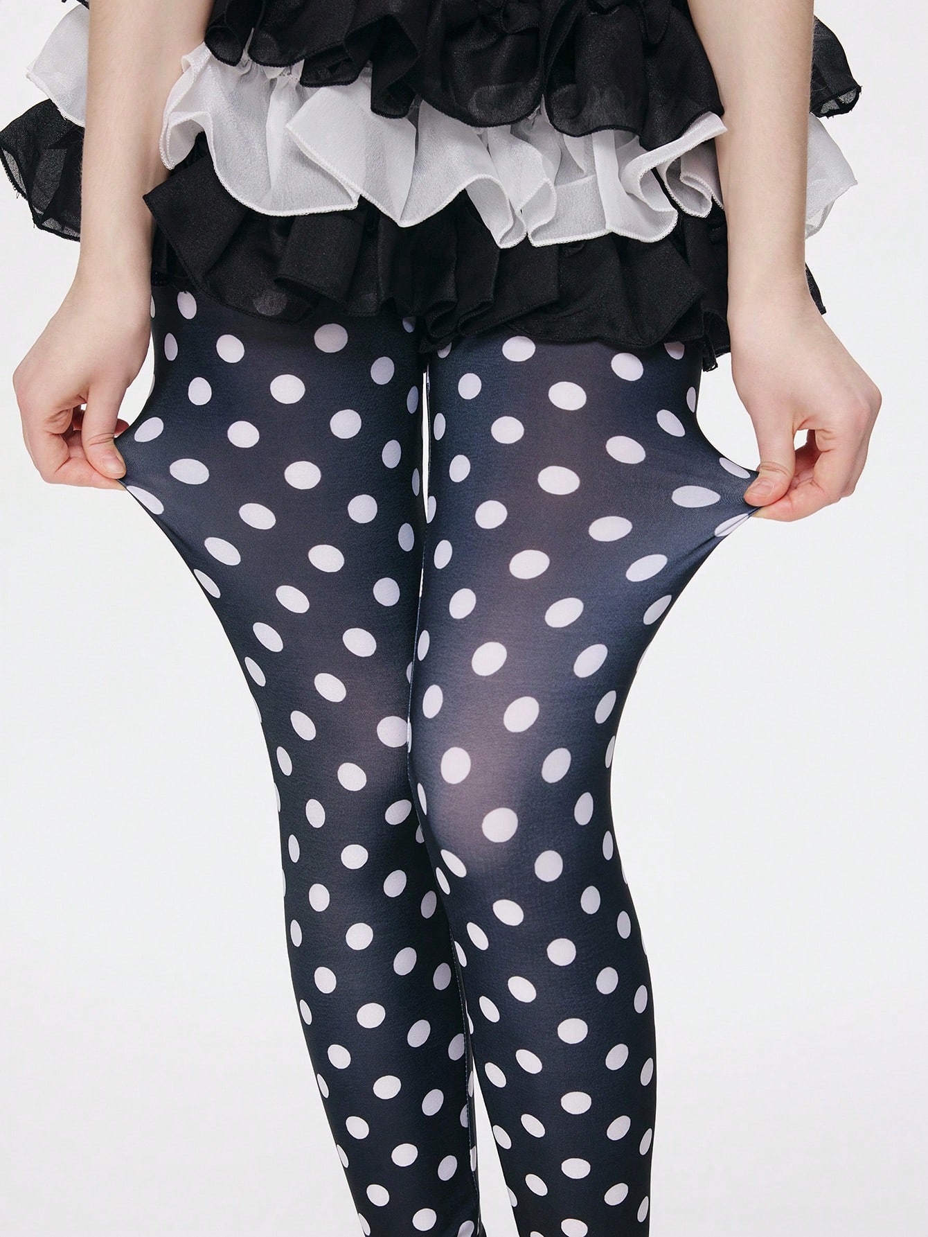 Grunge Punk 1 pezzo di collant minimalisti a pois, leggings neri punk, calze in rete ultra sottili ed elastiche, traspiranti, versatili per tutte le stagioni