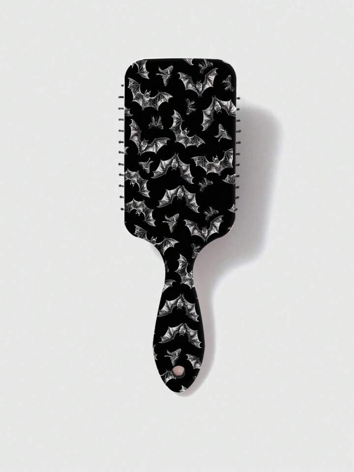 Grunge Punk Spazzola per capelli con cuscinetto d'aria a motivo pipistrello, 1047780, pettine con camera d'aria quadrata per prevenire l'aggrovigliamento, Ognissanti
