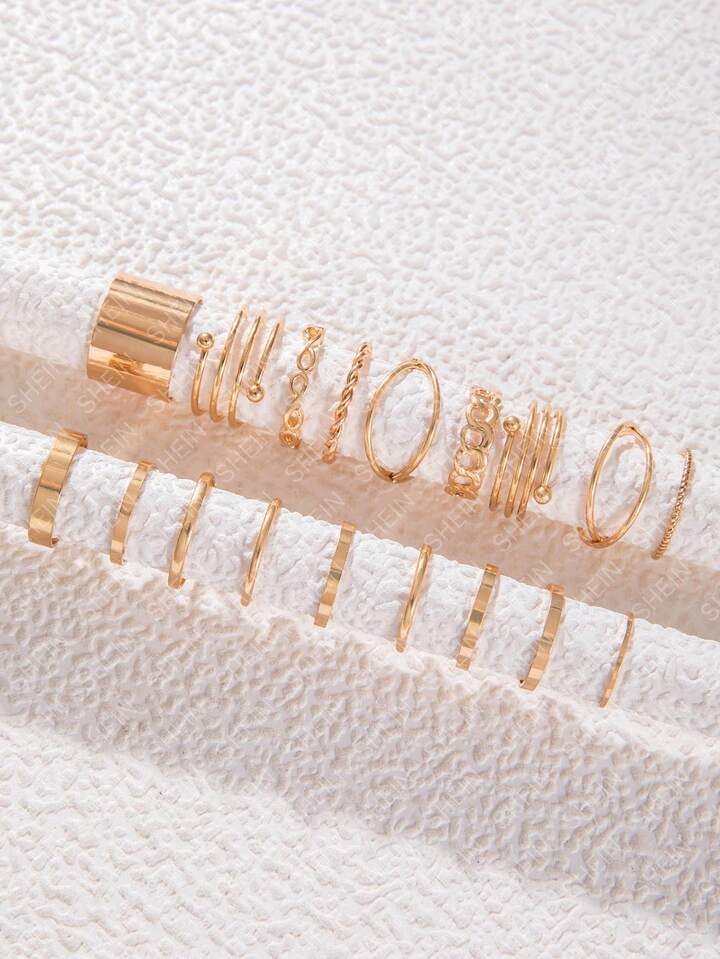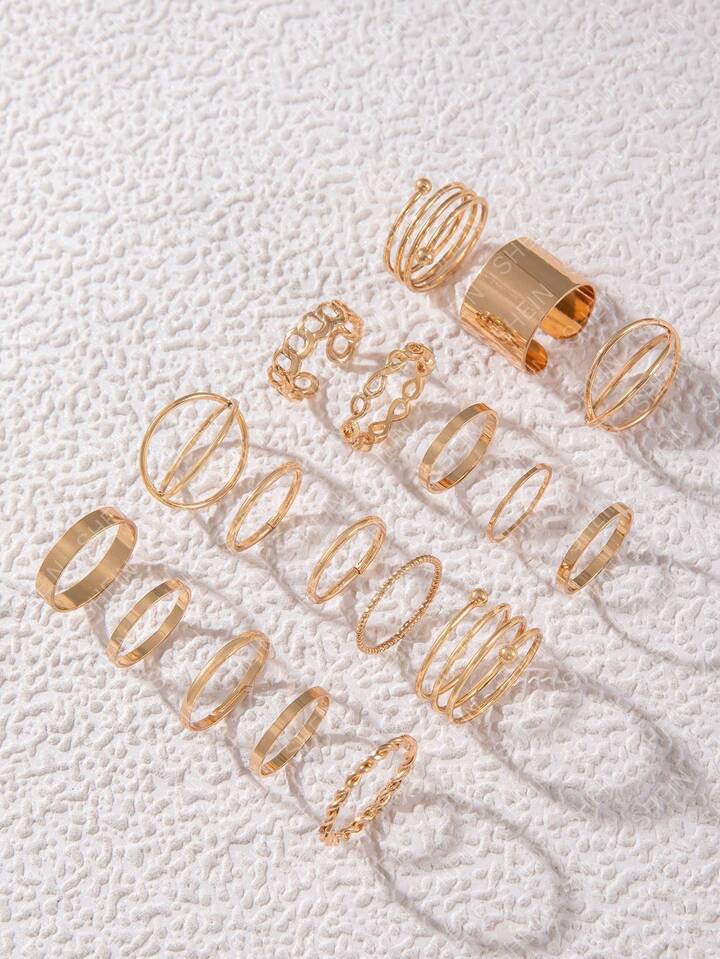 Grunge Punk Set di 18 anelli geometrici minimalisti e vuoti in oro, accessori di moda adatti per feste di donne, regalo