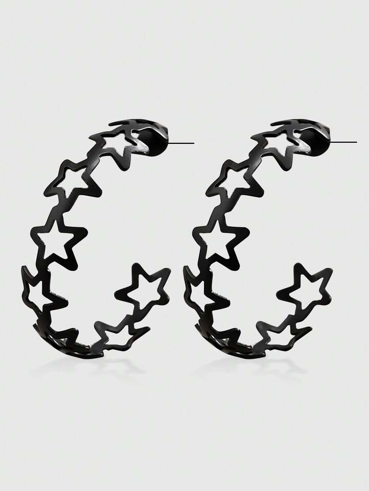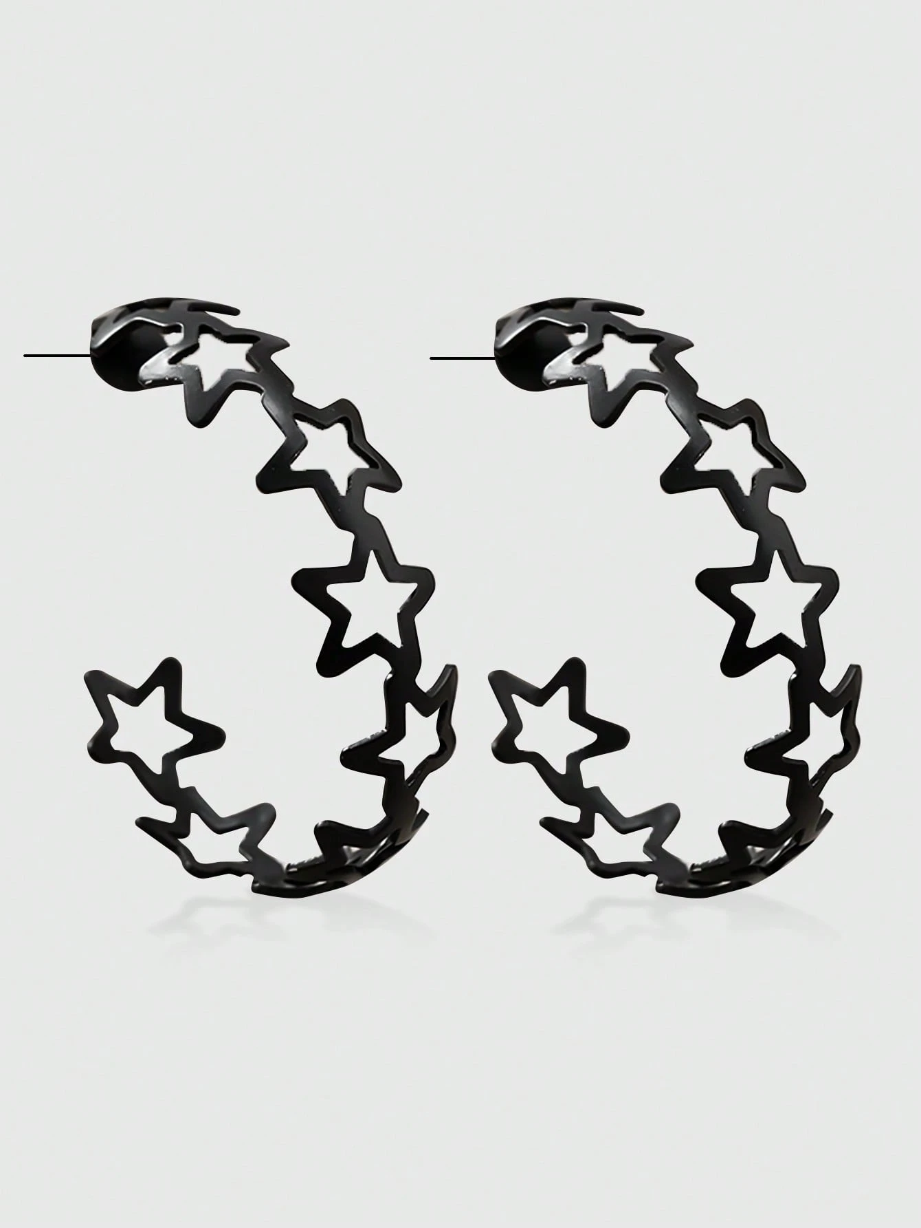 Grunge Punk 1 paio Orecchini a cerchio aperto alla moda lega di rame decorato stella per donne per decorazione quotidiana