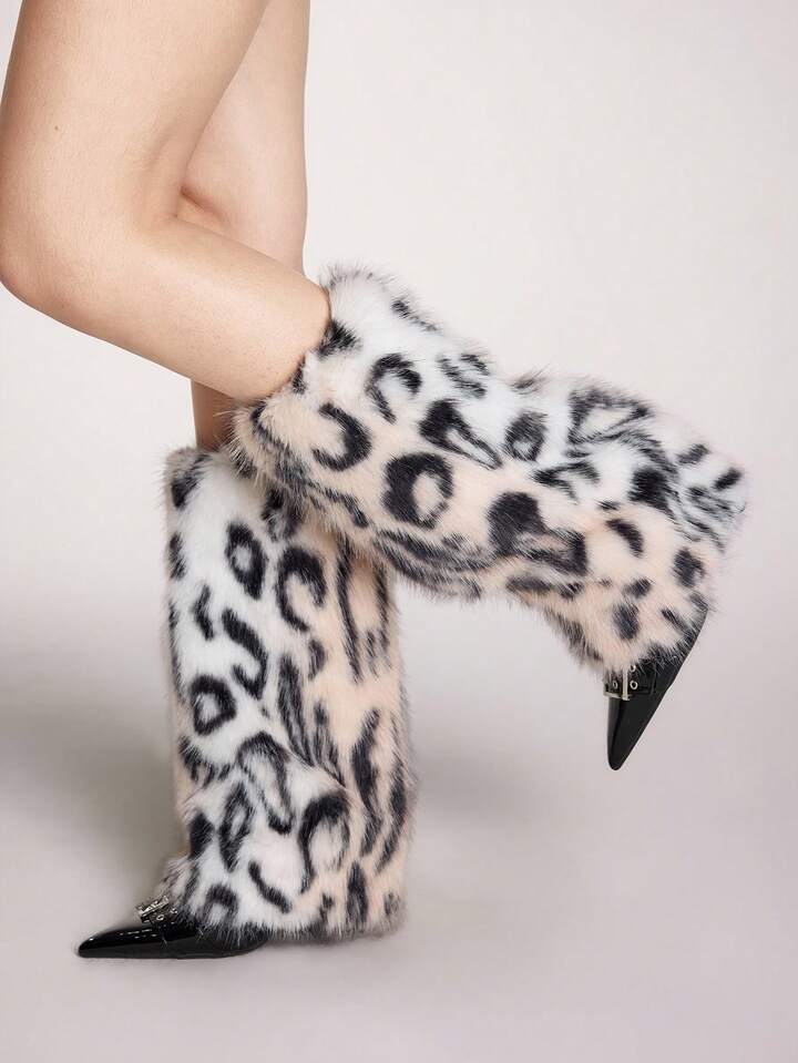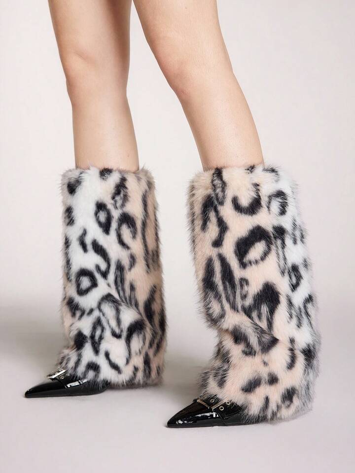 Grunge Punk 1 coppia di scaldamuscoli alla moda e caldi con stampa leopardata per donne