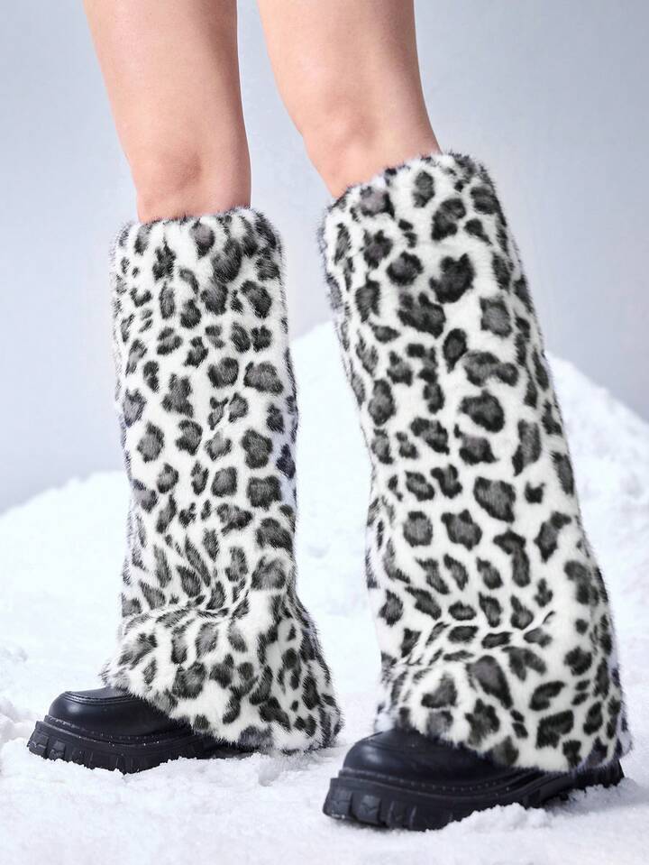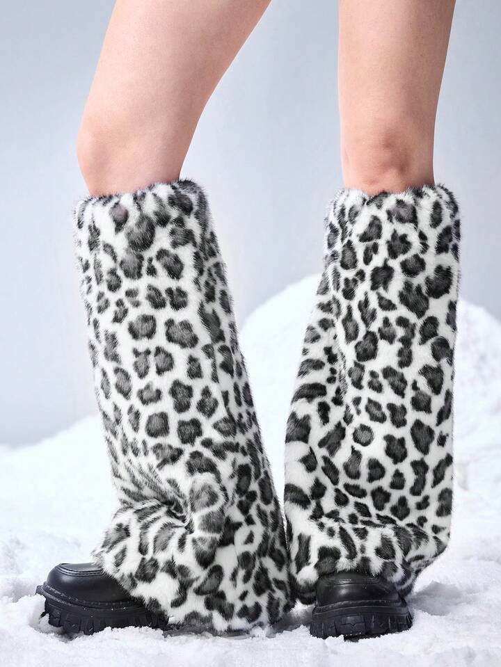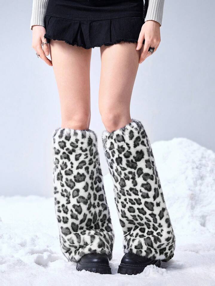 Grunge Punk 1 coppia di calzini riscaldanti e alla moda con stampa leopardata per donne