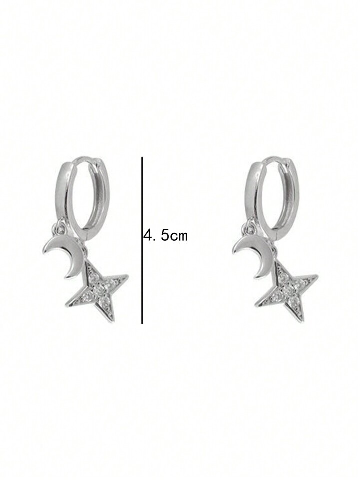 Grunge Punk 1 Paio Di Orecchini A Pendente A Luna Crescente E Stella In Argento