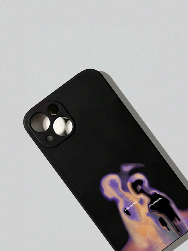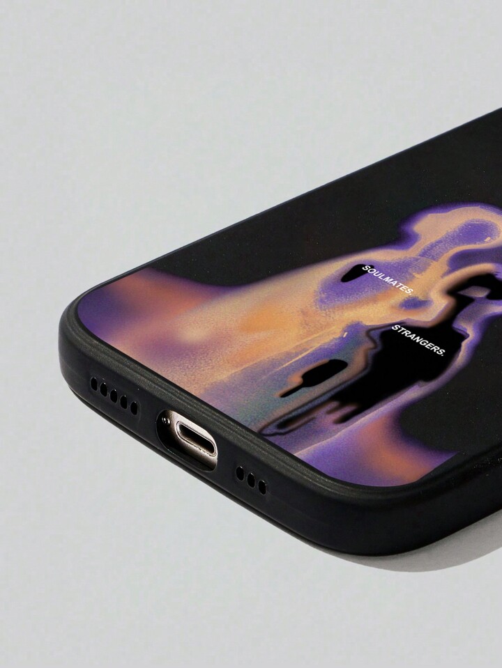Grunge Punk 1 pezzo Custodia nera per telefono con motivo sagoma di persone, compatibile con iPhone 11 12 13 14 15 Pro Max 16