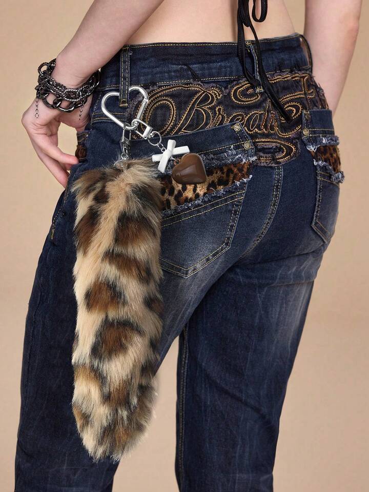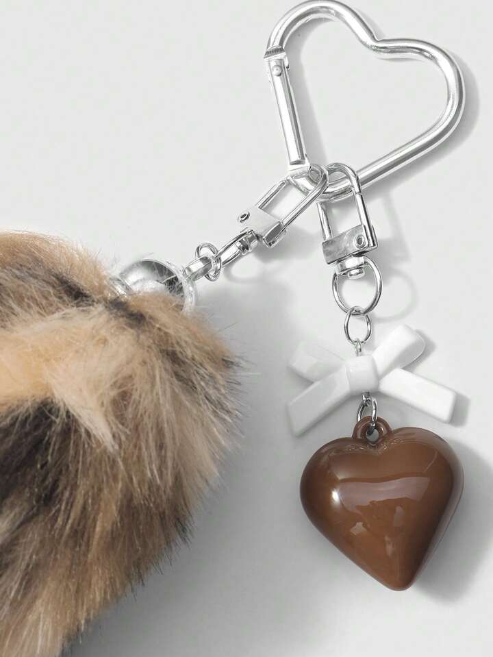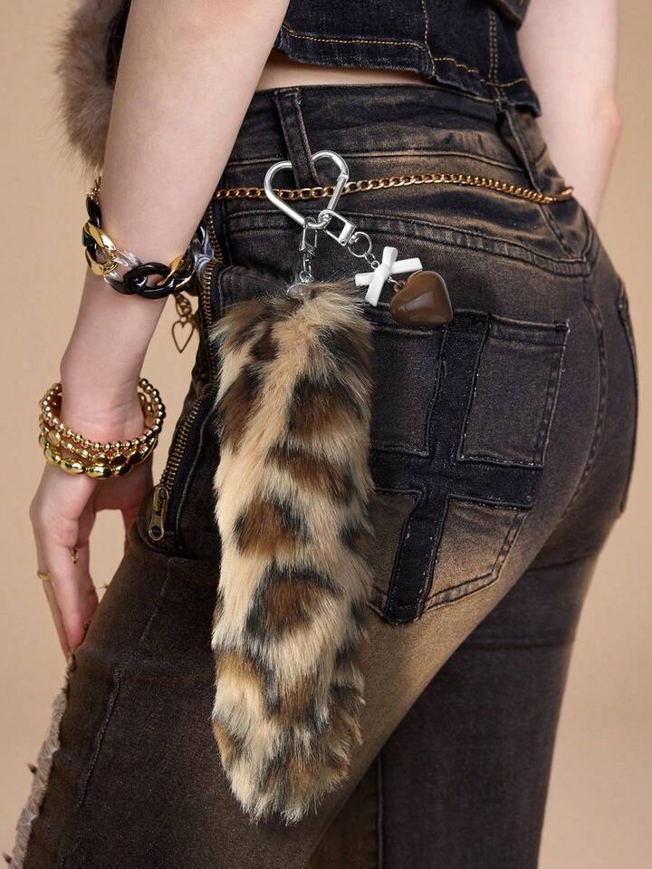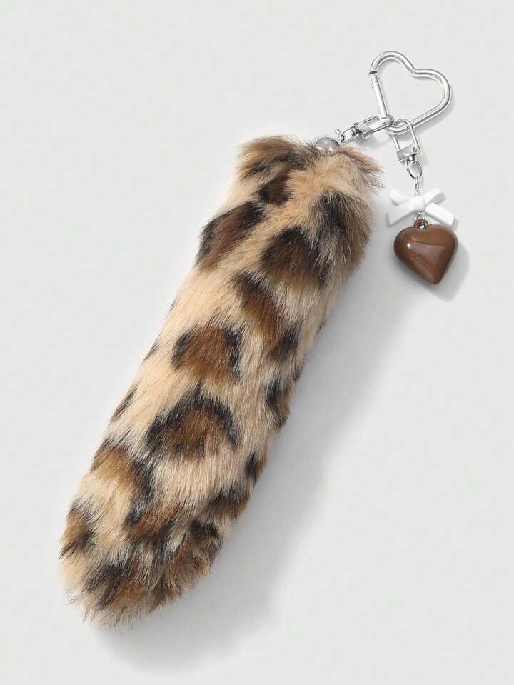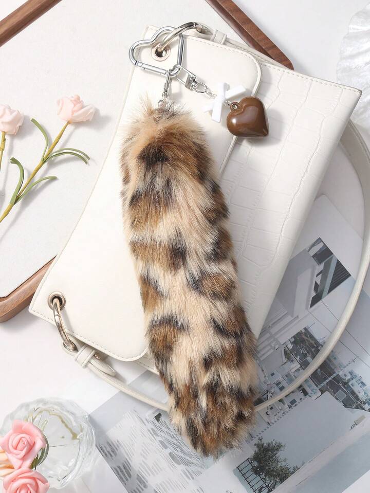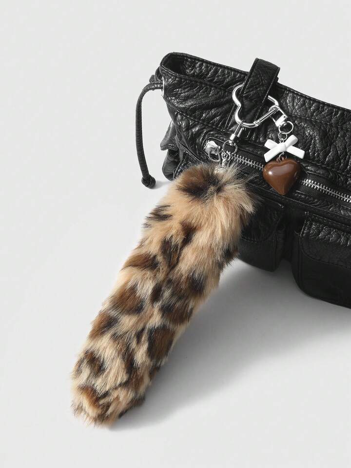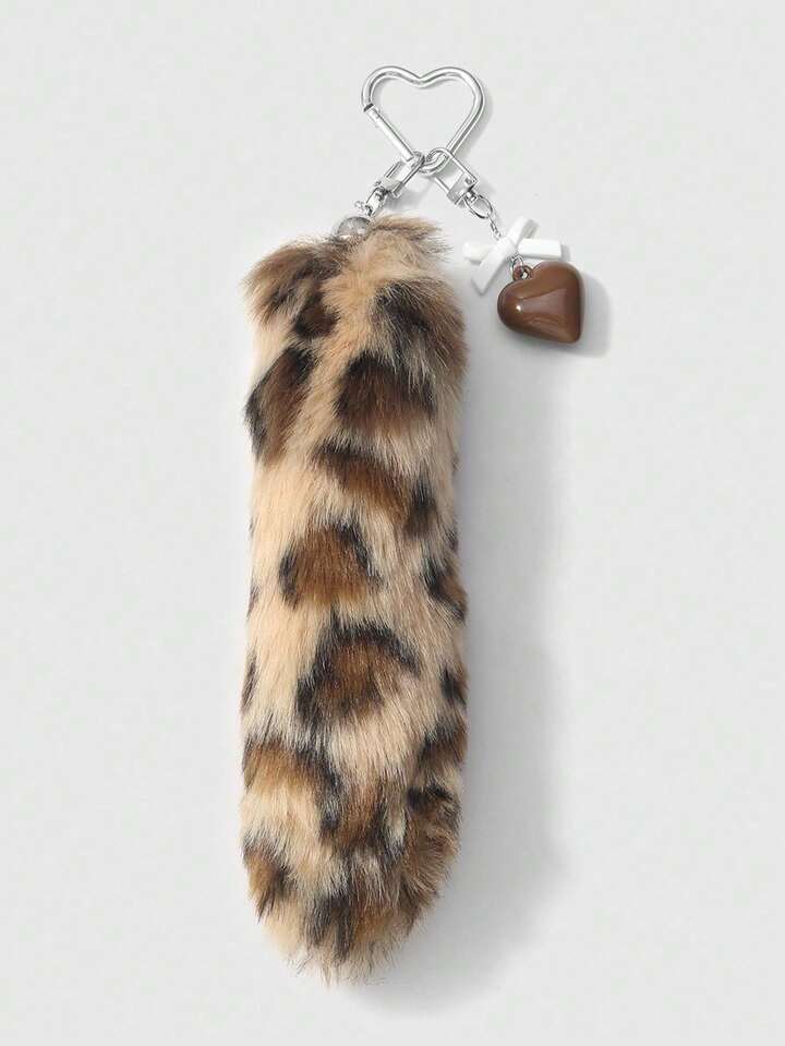 Grunge Punk 1 pezzo Ciondolo portachiavi fai-da-te retrò e chic in acrilico con fiocco, cuore e coda di leopardo in peluche, regalo di alta qualità alla moda per donne e ragazze, per uso quotidiano e festività