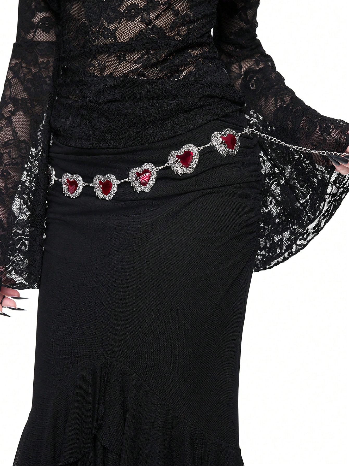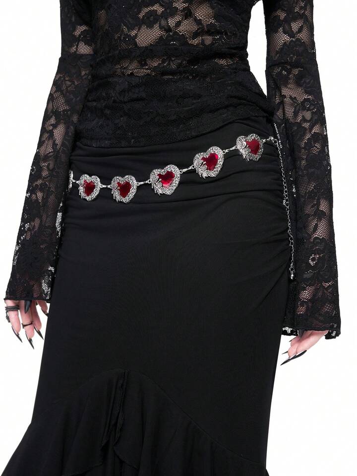 Grunge Punk 1 pezzo Catena per vita in stile gotico con decorazione a forma di cuore e rosa, accessorio con gocce di olio rosso per abiti, versatile per uso quotidiano, Ognissanti