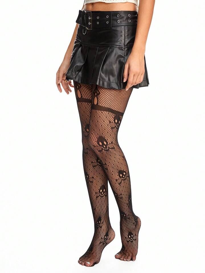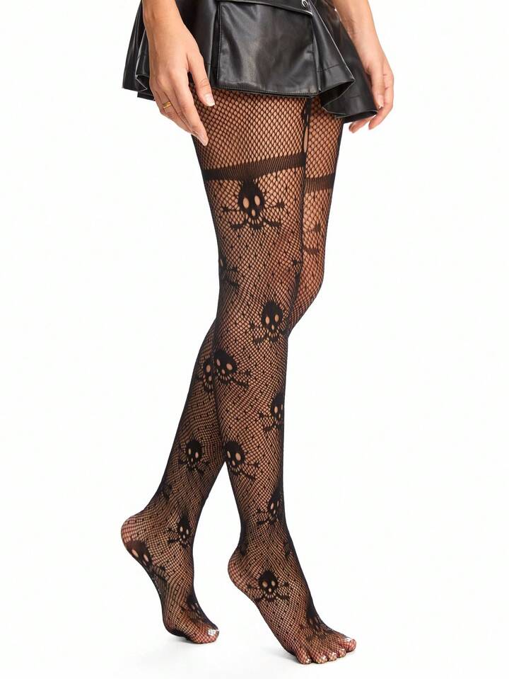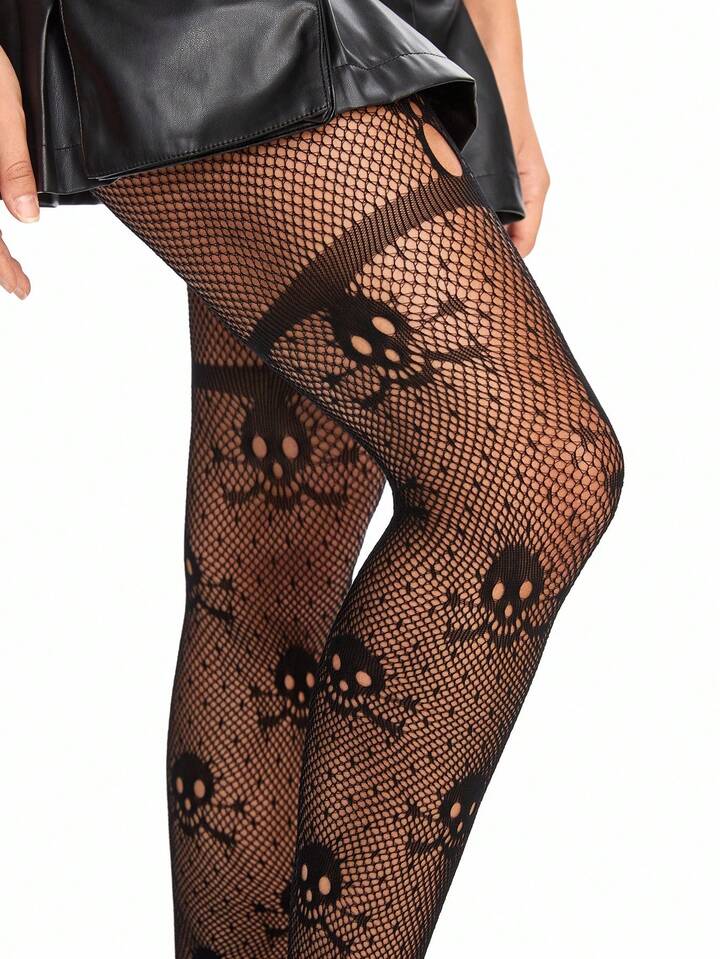 Grunge Punk 1 pezzo Collant/Calze/Leggings sexy ad alta elasticità con stampa di scheletro di Ognissanti per donne