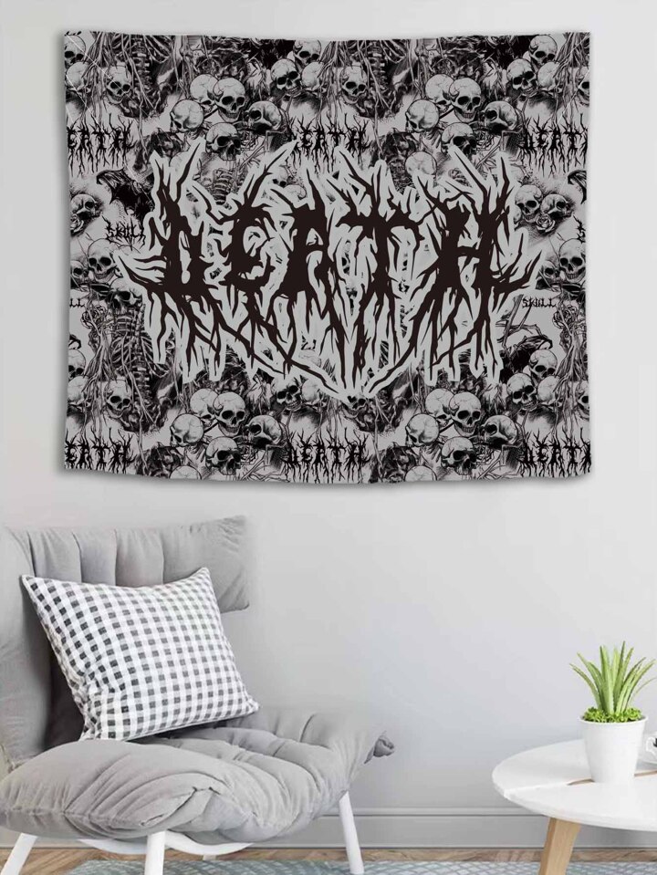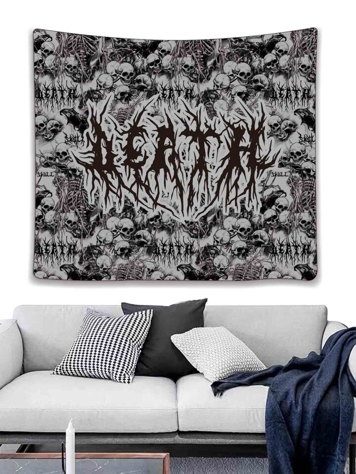Grunge Punk 1 pezzo Arazzo con stampa lettere e scheletri