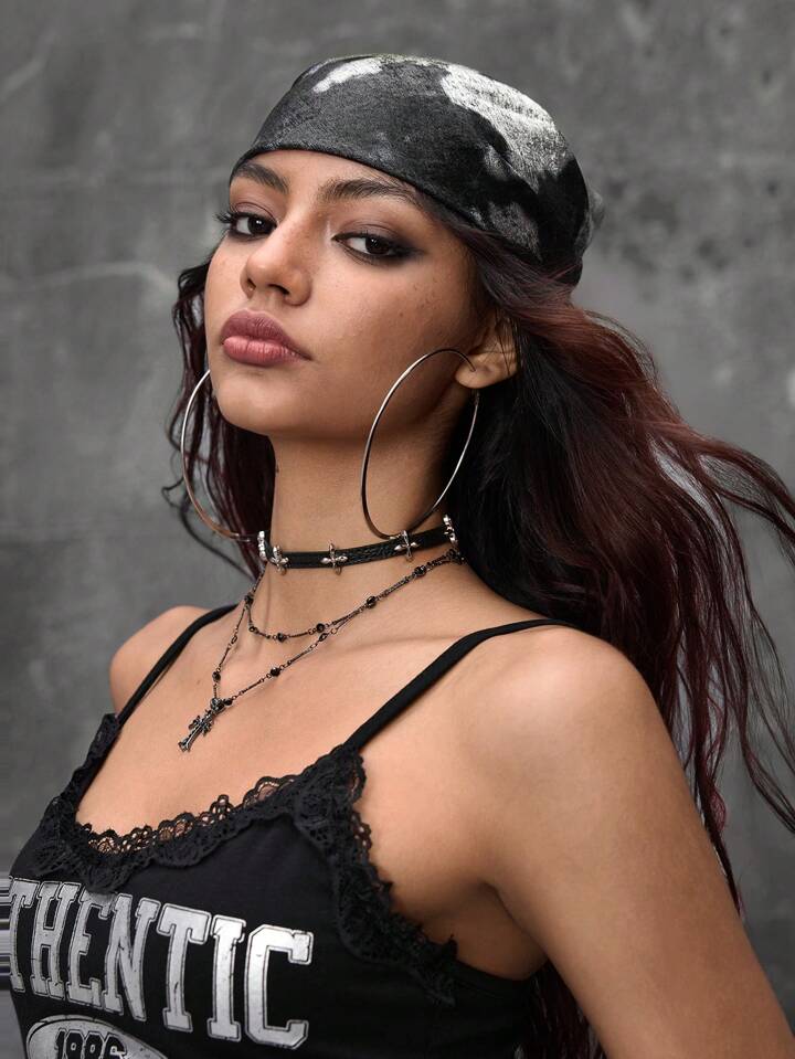 Grunge Punk 1 pezzo Sciarpa da donna stile Y2K argento liquido, stile sassafonico, foulard quadrato, versatile da indossare come fascia per capelli, collarino, adatto per uomo e donna