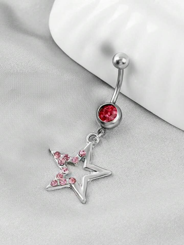 Grunge Punk 1 pezzo Anello minimal per l'ombelico da donna con strass a forma di stella a cinque punte, sexy