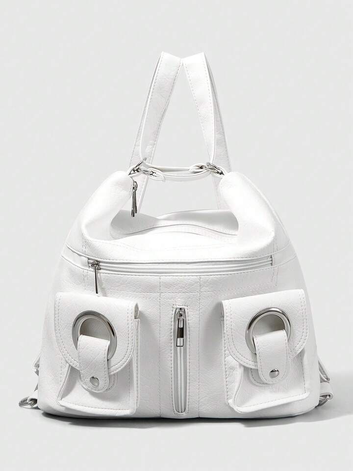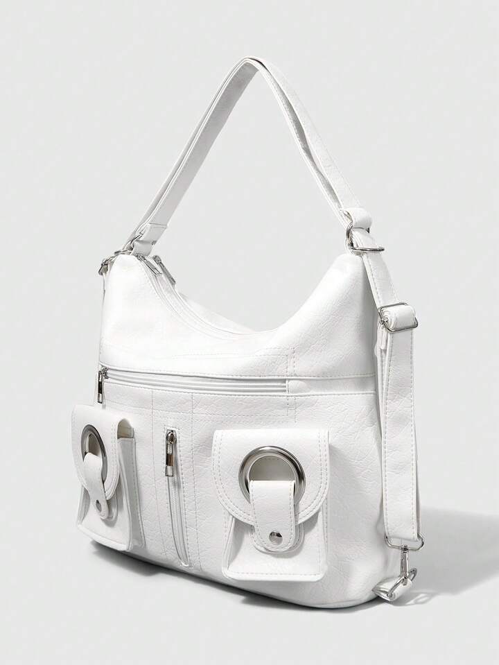 Grunge Punk 1 pezzo Borsa shopper in bianco, minimalista e versatile, con grande capacità