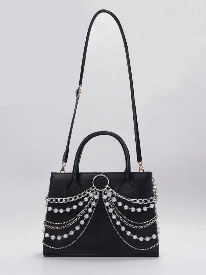 Grunge Punk 1 pezzo Borsa a tracolla quadrata mini punk gotica con catena di perle, piccola borsa a tracolla nera regolabile, adatta per appuntamenti e vacanze