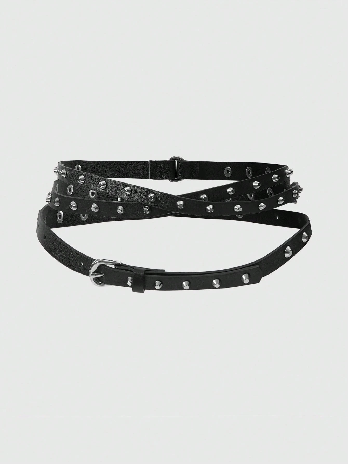 Grunge Punk 1 pezzo Cintura nera in stile punk con fibbia in metallo e borchie, cintura in pelle sottile a doppio strato in stile gotico Y2K, molto lunga, adatta per uso quotidiano, estate, scuola, autunno, Ognissanti