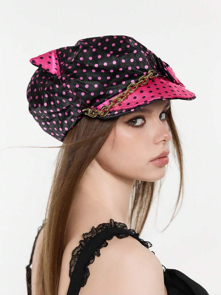 Grunge Punk 1 pezzo Berretto alla francese stile punk con rivetti circolari cavi, Cappellino da giornalaio rotondo stile Y2K, articolo di moda personalizzato per uso quotidiano