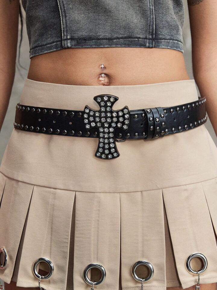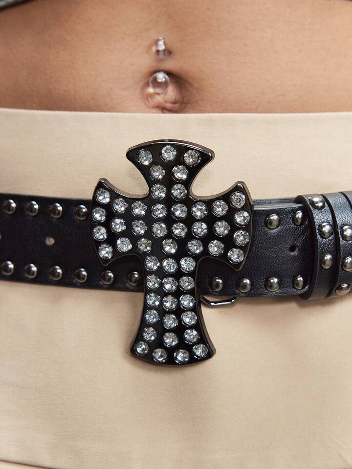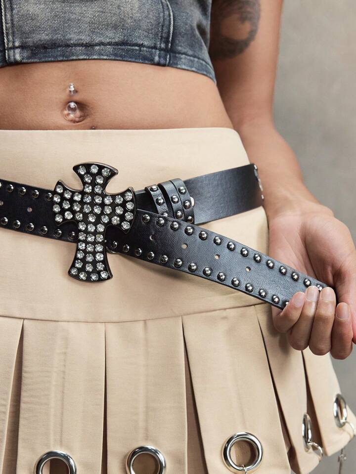 Grunge Punk 1 pezzo Cintura stile punk con fibbia a croce, cintura in pelle con fibbia in metallo tempestata di borchie di moda Y2K, accessorio decorativo personalizzato
