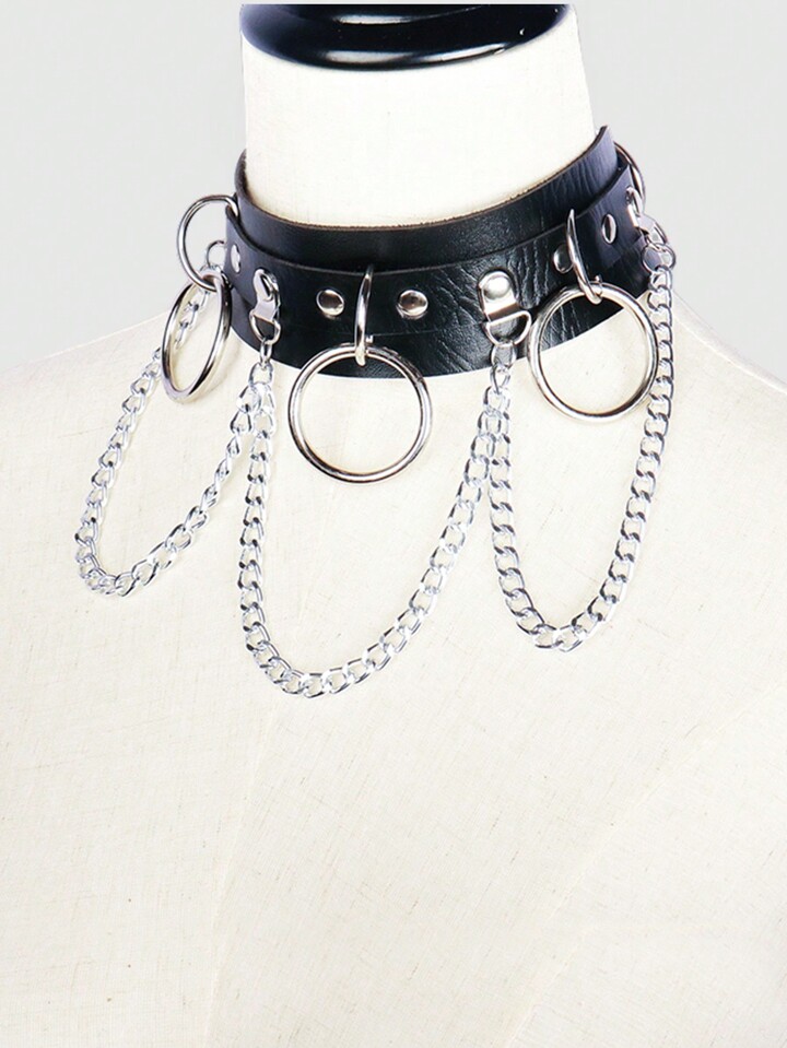 Grunge Punk 1 Pezzo Collana A Catena Circolare Con Nappine In PU Stile Punk Adatta Per L'abbigliamento Quotidiano Femminile