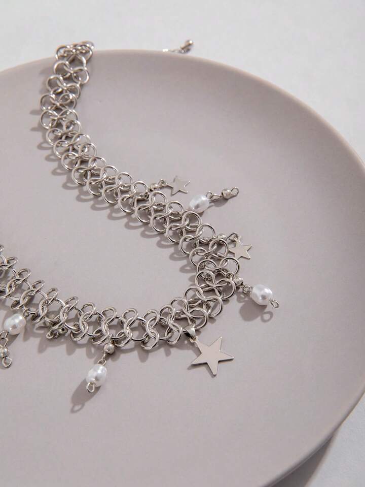 Grunge Punk 1 Pezzo Semplice Ma Audace Collana Ciondolo Con Design Di Perle E Stelle, Perfetta Per Feste E Regali