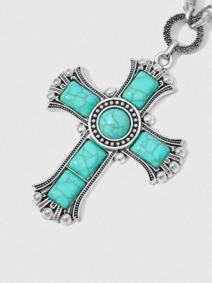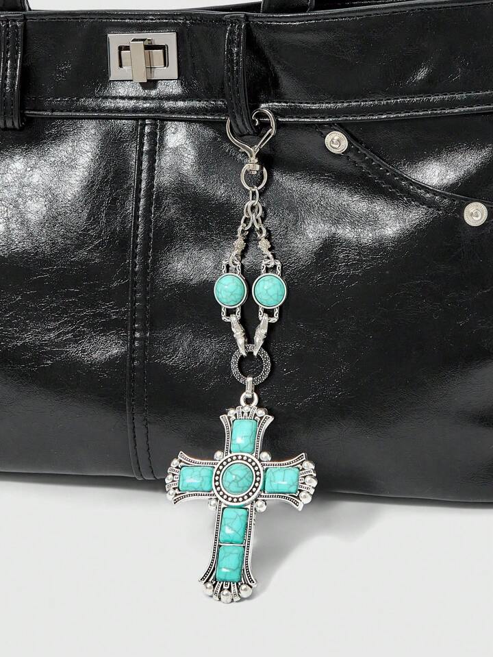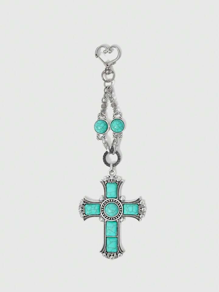 Grunge Punk 1 pezzo Portachiavi/ciondolo da borsa vintage realizzato a mano con turchese blu-verde in stile punk a forma di croce