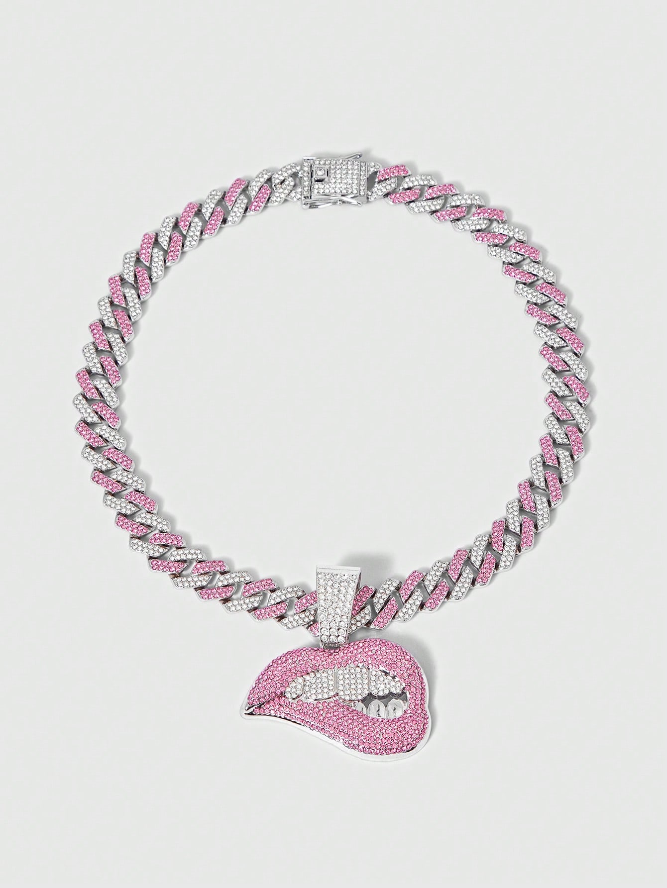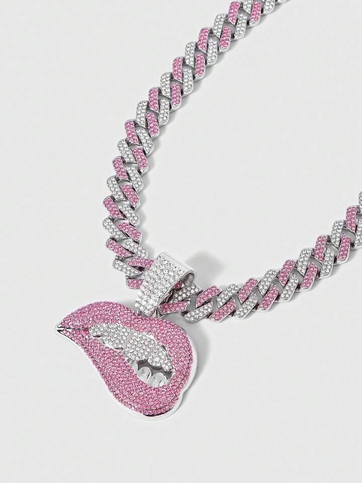 Grunge Punk 1 pezzo Collana con ciondolo a forma di labbra in rosa e bianco con strass, stile punk e hip hop, gioiello regalo e da indossare alle feste