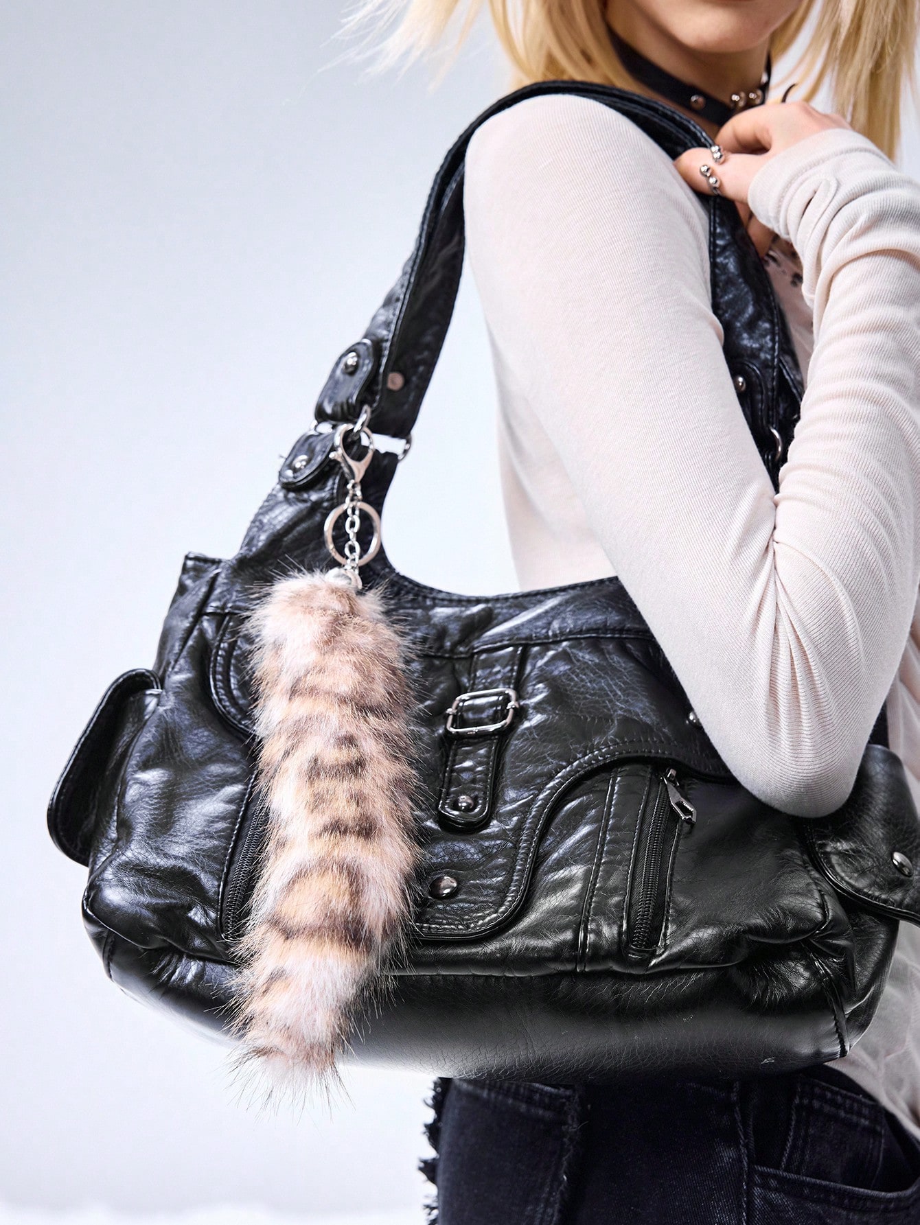 Grunge Punk 1 pezzo Portachiavi/ciondolo a forma di coda di volpe in finta pelliccia marrone sfumata, stile retrò Y2K, di alta qualità e versatile, adatto come accessorio per donne/ragazze per uso quotidiano o come regalo per le vacanze