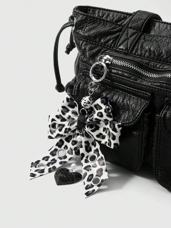 Grunge Punk 1 pezzo Ciondolo portachiavi/charm per borsa in stile gotico scuro, retrò punk chic di alta gamma, in pelle nera a doppio strato con fiocco cavo e stella a croce, adatto per le donne, per uso quotidiano o come regalo