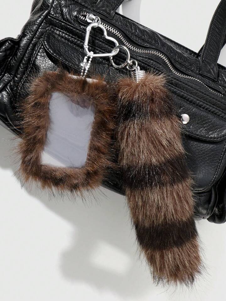 Grunge Punk 1 pezzo Portachiavi ciondolo con coda di animale in pelliccia sintetica a righe marrone stile retrò chic di alta qualità, adatto per uso quotidiano di donne/ragazze, regalo per le vacanze