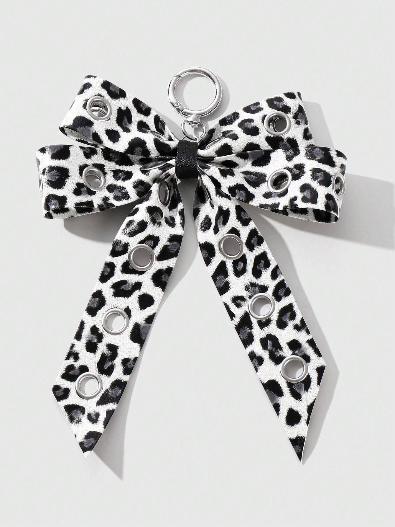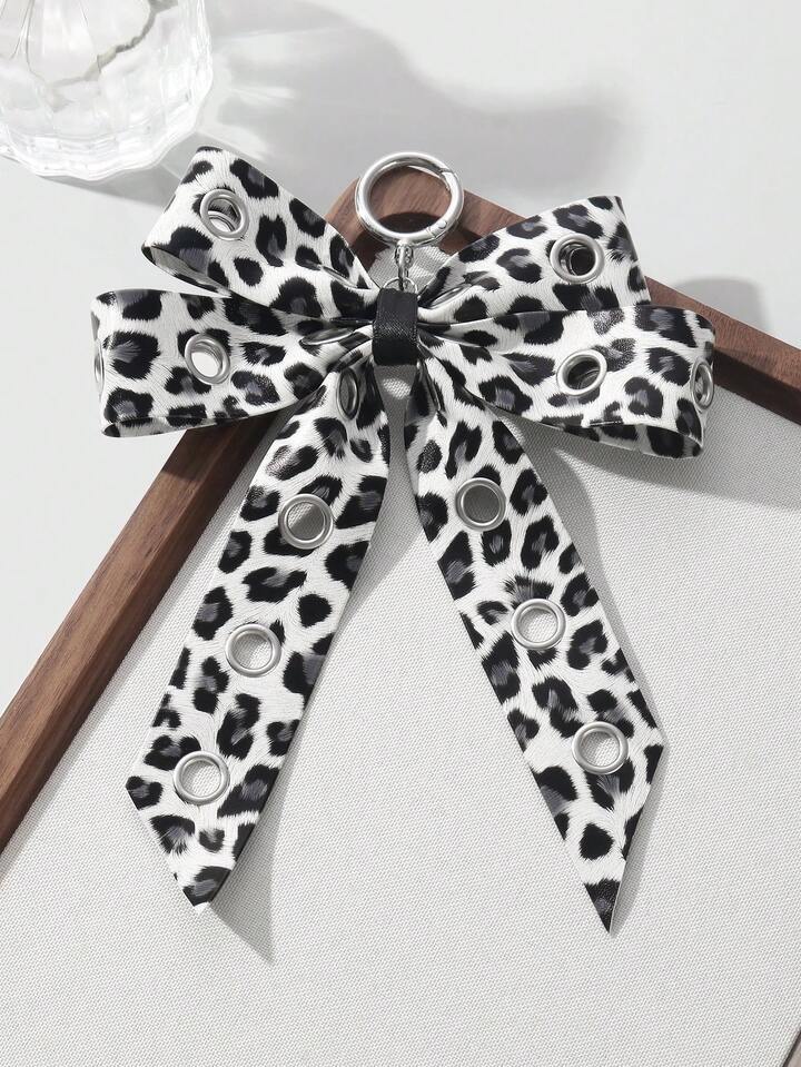 Grunge Punk 1 pezzo Portachiavi/Ciondolo stile Y2K retrò punk chic in pelle nera di alta qualità con doppia di fori e fiocco di perle finte, adatto per donne e ragazze per uso quotidiano, regalo per le vacanze