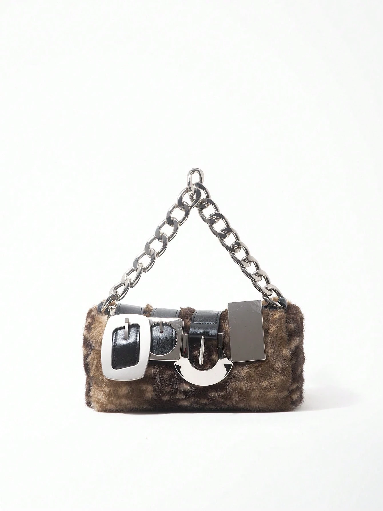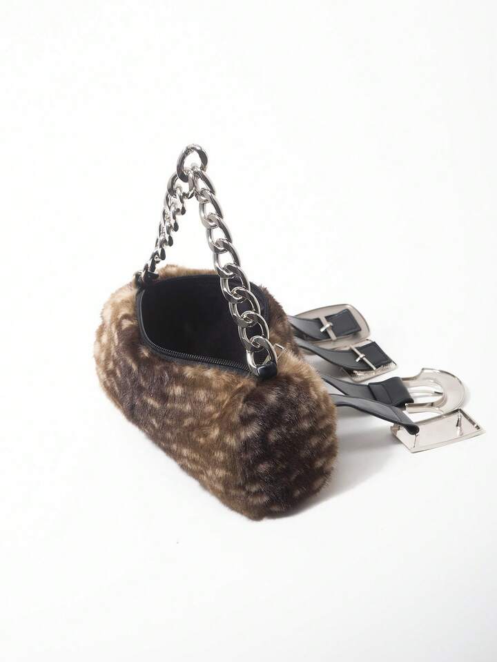 Grunge Punk Borse da donna stile anni 2000, borse da motociclista punk con borchie, borse a catena in metallo, borsette in pelliccia, portafogli autunno e inverno (motivo casuale)