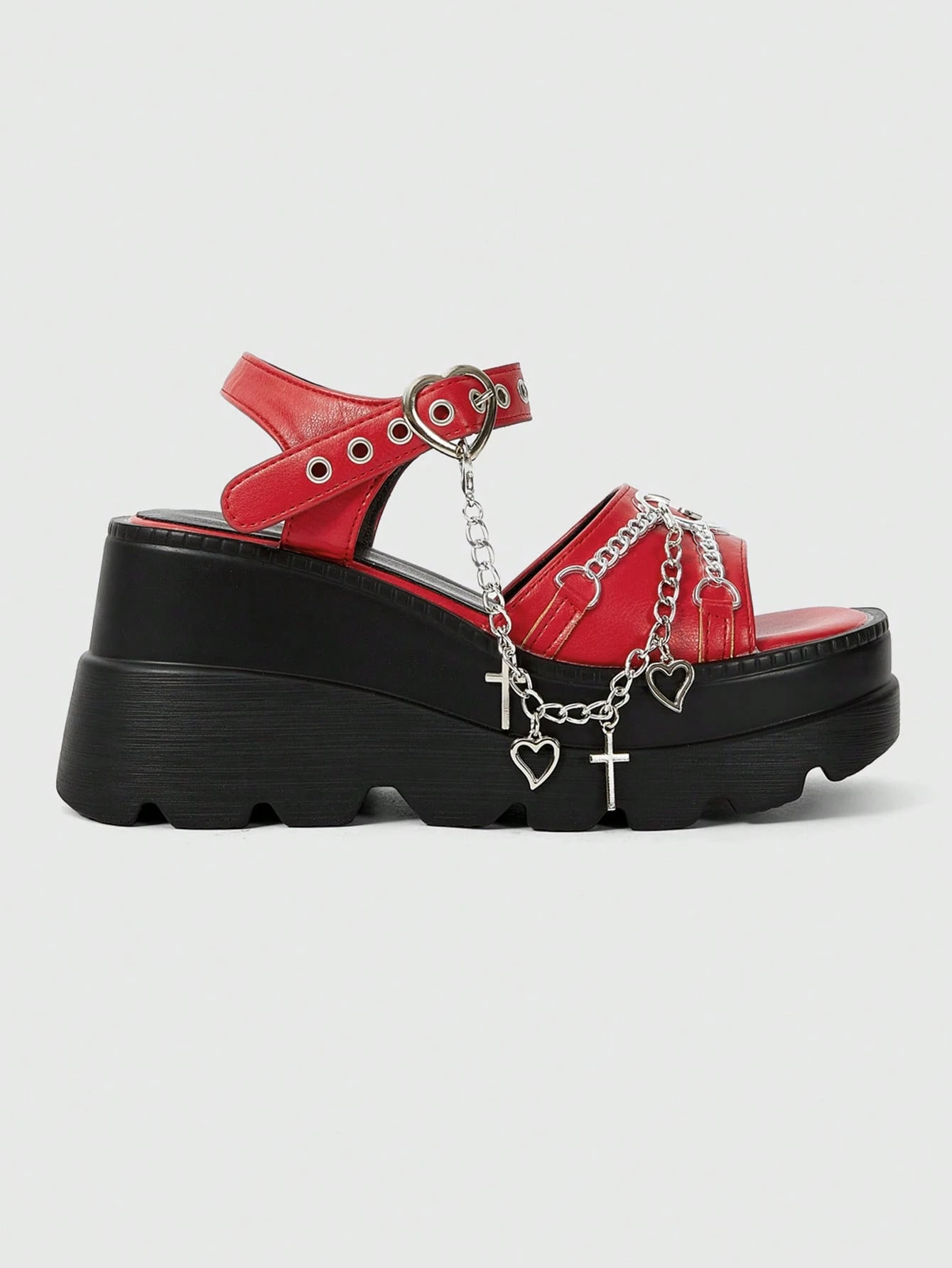 Grunge Punk 2024 Nuovi sandali casual estivi con piattaforma, accento catena grossa e rosso gotico